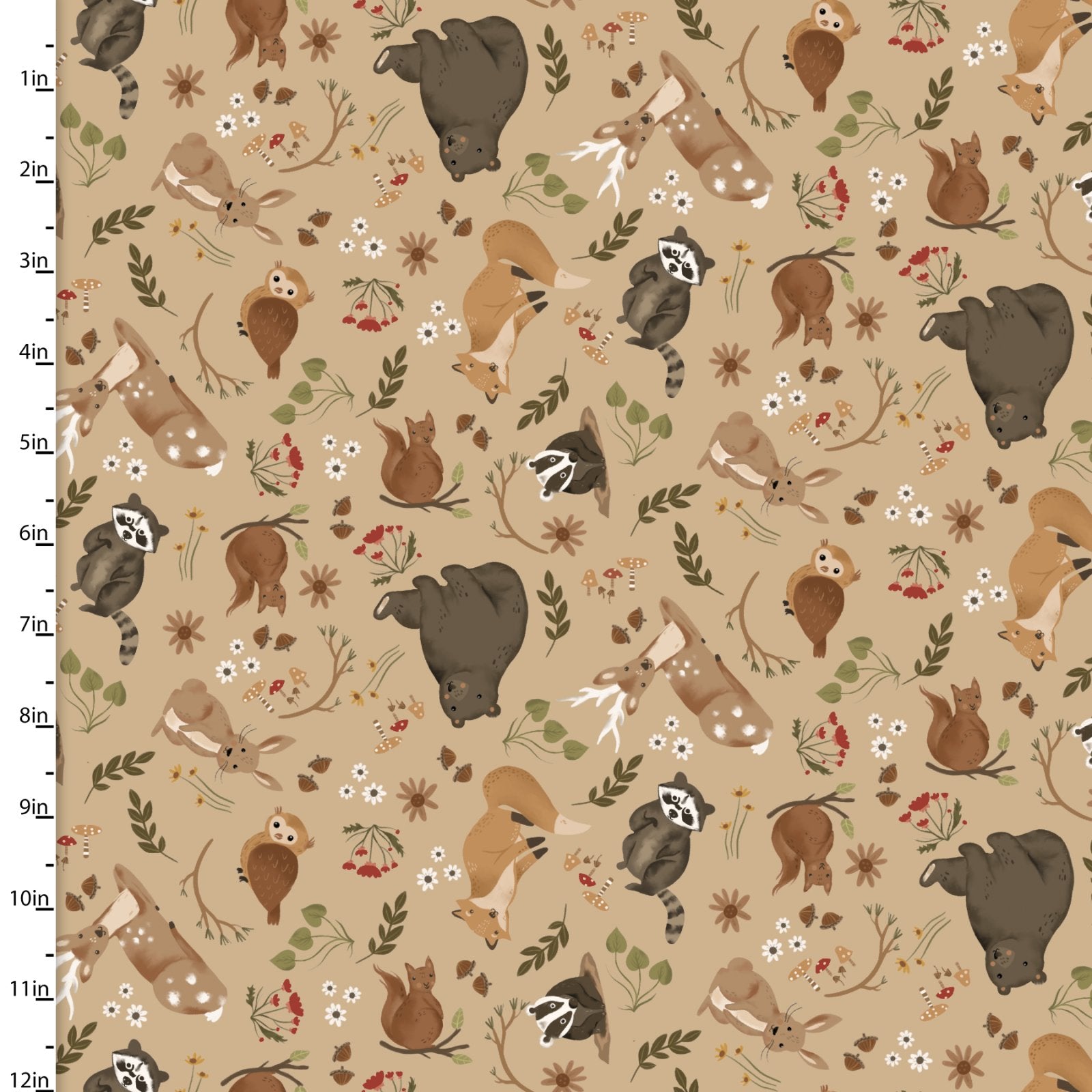 Cozy Forest | Tossed Animals Tan by Elaine Kay for 3 Wishes Fabric | 20832-TAN