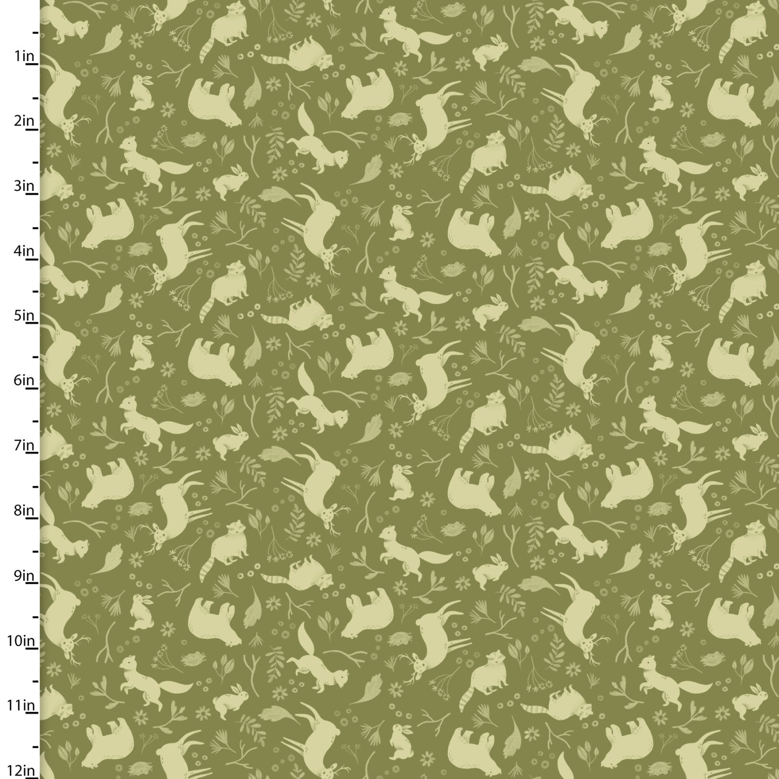 Cozy Forest | Camo Outline Green by Elaine Kay for 3 Wishes Fabric | 20833-GRN