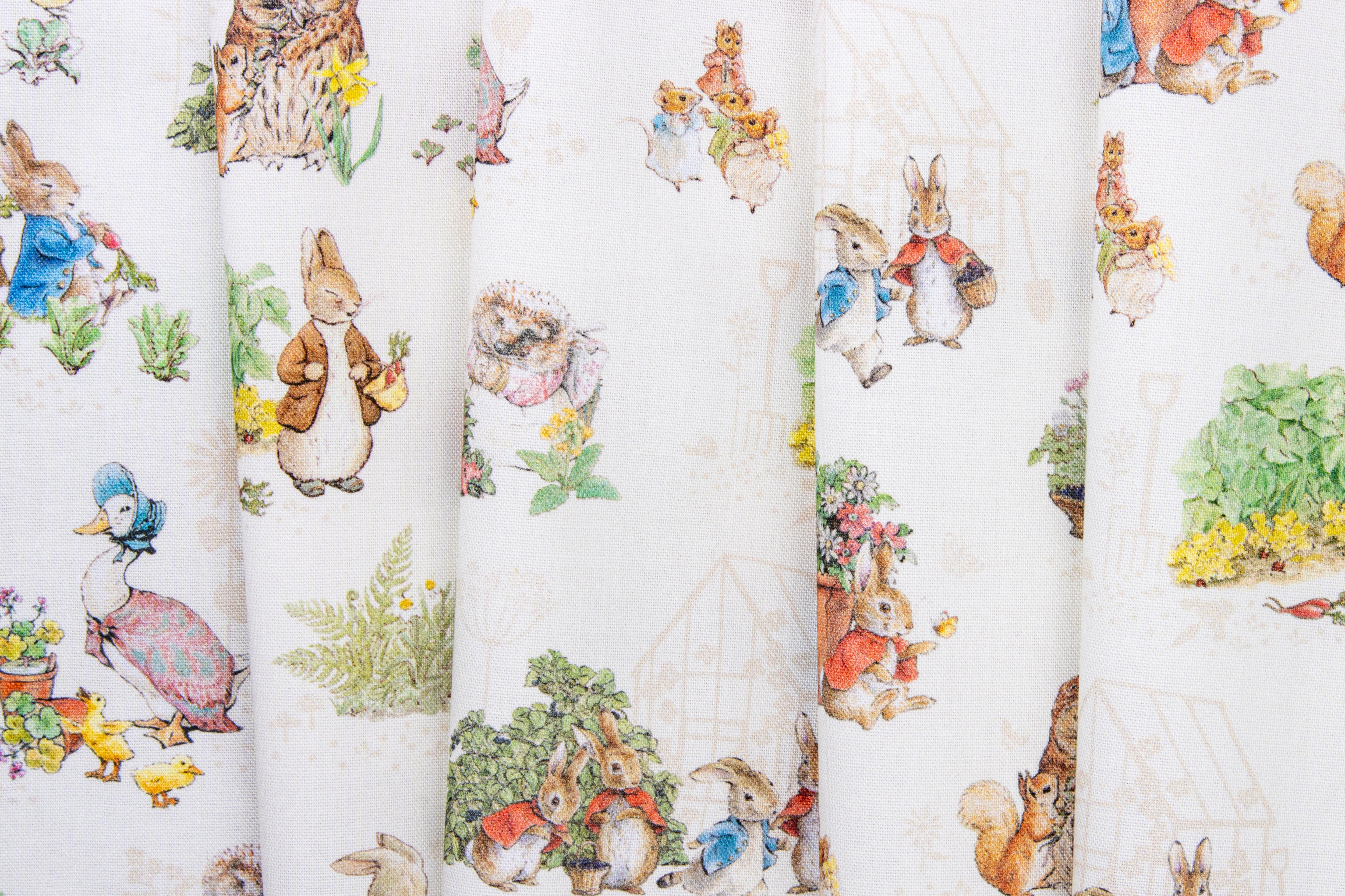 The Peter Rabbit and Friends fabric collection by Riley Blake Designs features pastel hues and beloved characters like Peter Rabbit and Jemima Puddle-Duck, with coordinating prints of florals, gingham, and woodland designs, perfect for quilts, nursery decor, and children’s apparel. The timeless illustrations paired with soothing colors make this collection ideal for capturing a nostalgic and storybook feel in your sewing projects.