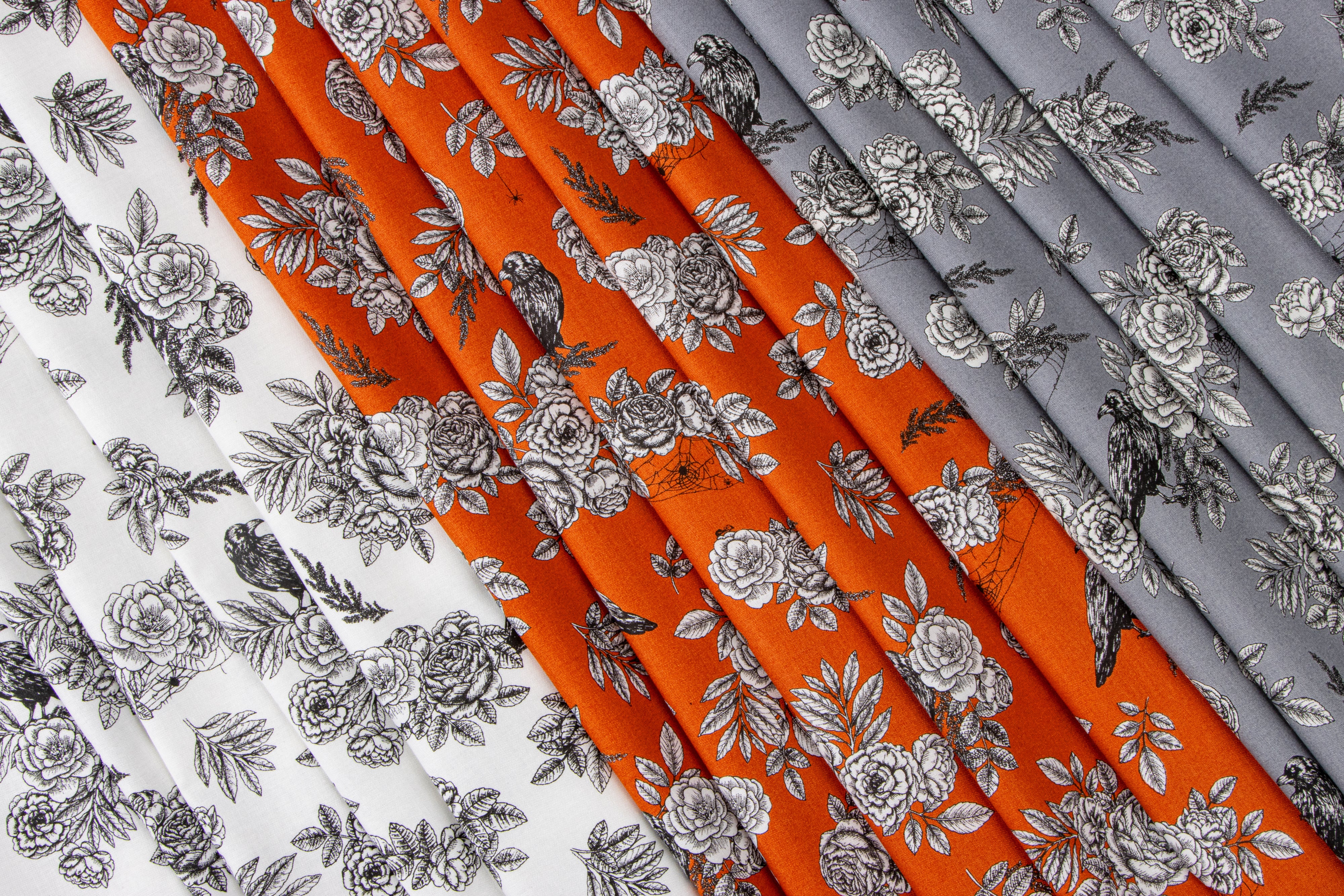 Eerily captivating, "Sophisticated Halloween" by My Mind's Eye will infuse your creations with a refined yet haunting allure. Craft elegant quilts, home decor, Halloween costumes, and more with this designer fabric collection, showcasing a sophisticated palette of cream, orange, gray, and purple. These enchanting prints, featuring bats, crows, spiders, and a spooktacular hand-drawn floral, will make your projects come alive with a touch of magical charm.