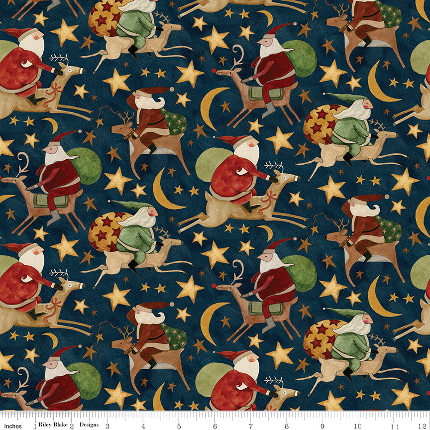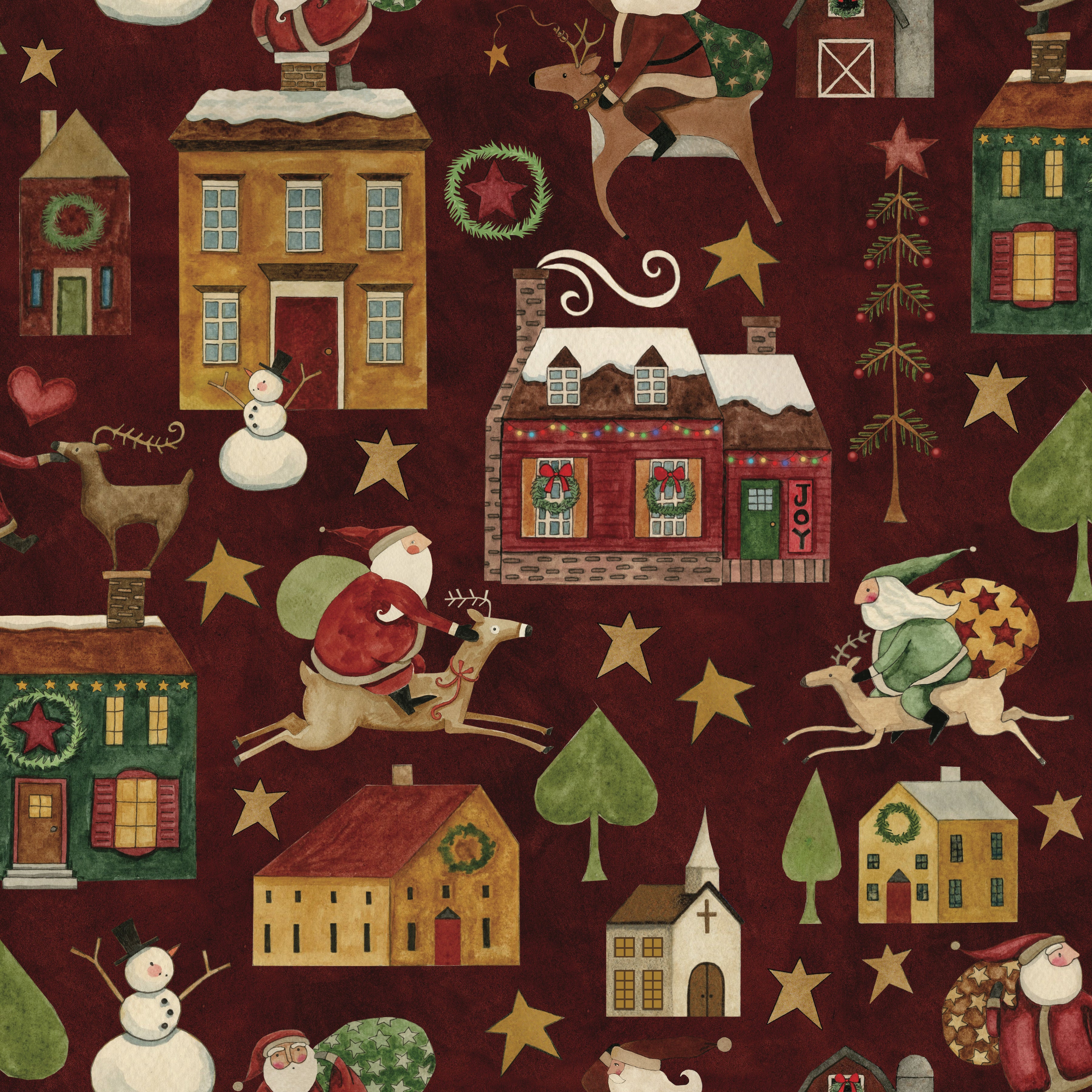 Celebrate the magic of the holidays with the "Up on the Housetop" fabric collection by Teresa Kogut for Riley Blake Designs. Teresa Kogut’s folk art flair shines through in this collection, which features a delightful mix of whimsical Santas, playful reindeer, and cozy winter scenes. Her unique blend of watercolor and drawing techniques adds depth and charm to each design. The collection’s rich palette of reds, greens, and winter blues captures the essence of the season, perfect for creating quilts, home décor, and festive crafts.