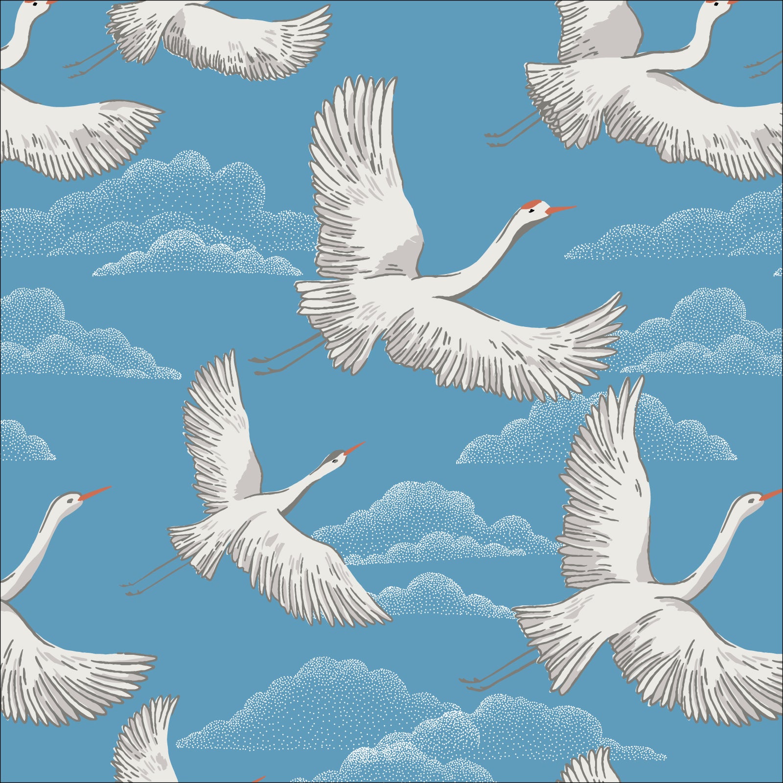 Baltic Woodland - Flying Cranes Organic Cotton from Cloud9 Fabrics