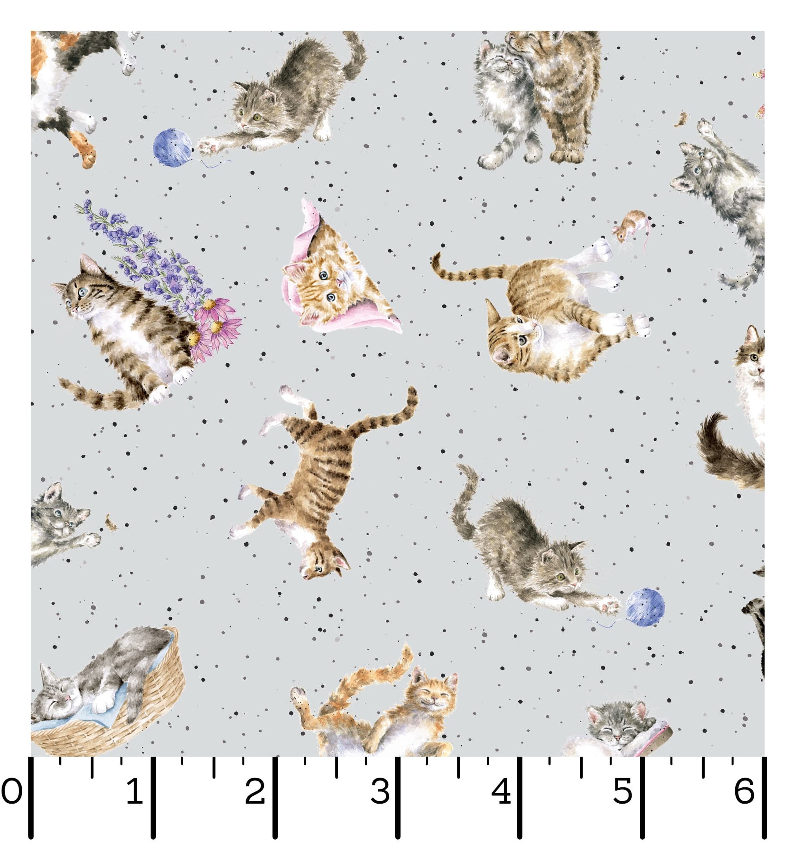 Whiskers & Paws | Tossed Cats - Grey by Hannah Dale for Maywood Studio | MAS10416-K