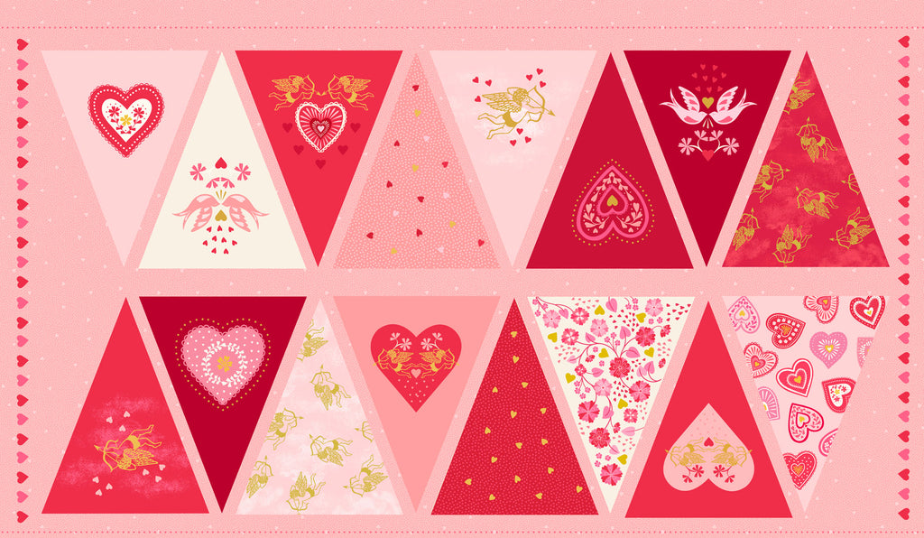 All We Need Is Love by Lewis & Irene is a romantic collection featuring cherubs, hearts, and florals with gold metallic accents. With a classic palette of reds, pinks, and creams, these 100% cotton fabrics are 44" wide and perfect for quilting, sewing, and heartfelt gifts.