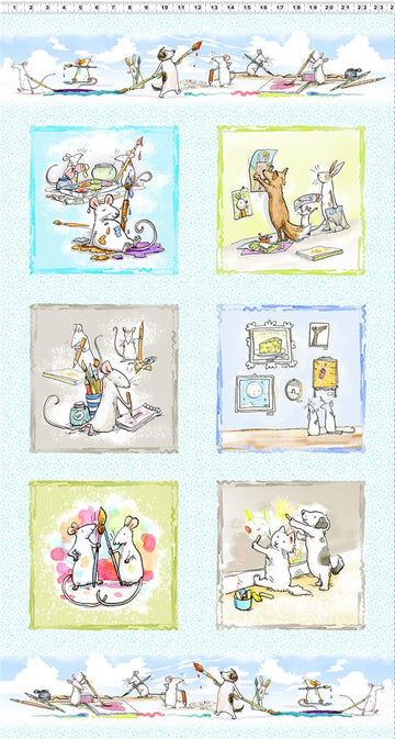 This 24" panel is an enchanting fabric panel that brings the playful spirit of creative animals to life. The panel features Anita Jeram's charming watercolor-style illustrations of adorable animals engaged in artistic activities, such as painting, drawing, and crafting. Set against a soft, neutral backdrop, the panel offers delightful pops of color from the animals’ art supplies and creations. Measuring 24" x 43", it’s perfect for creating unique quilt centerpieces, wall hangings, or standalone art projects. This panel is a whimsical choice for anyone who loves Anita Jeram's signature style and themes of creativity and fun.