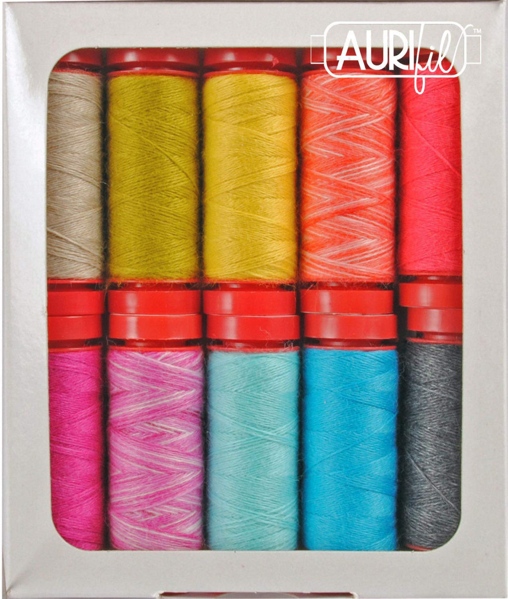 Set includes 10 small spools of 12 wt Lana wool thread from the Modern Crewel Work Collection by Aurifil