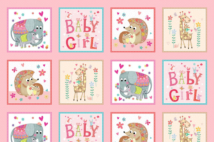 Get ready for a gender reveal party with Baby Love. Adorable rompers, rainbows and ribbons fill this lovable collection. This collection makes for great baby shower decor, reusable wrapping paper, or baby blankets. The darling “Sugar and Spice” block prints can be fussy cut for easy quilting. 100% Cotton, 44" Wide.