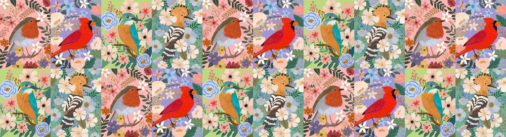 Mia Charro captures the sense of freedom and grace of birds with her cheerful and colorful illustrations of cardinals, robins, woodpeckers, and more. Thoughtful florals and subtle geometrics add additional depth to the Bird Garden collection.