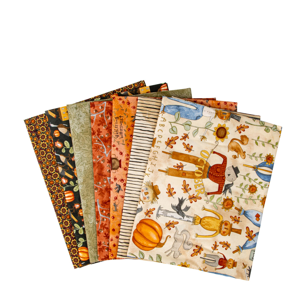 This precut bundle includes 7 one-yard cuts (36" x 43/44") of each print in the cornsilk colorway from the Bittersweet Farm collection. Colors included are C14850-CORNSILK, C14851-MIDNIGHT, C14852-ORANGE, C14853-SQUASH, C14854-MIDNIGHT, C14855-OLIVE, C14856-CORNSILK.