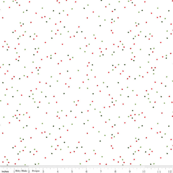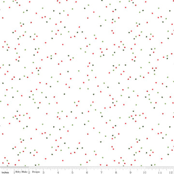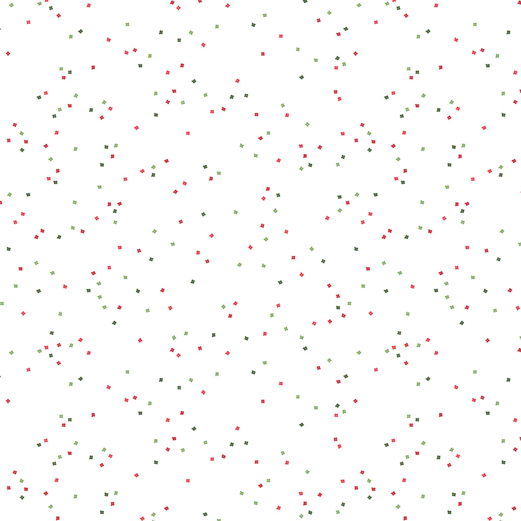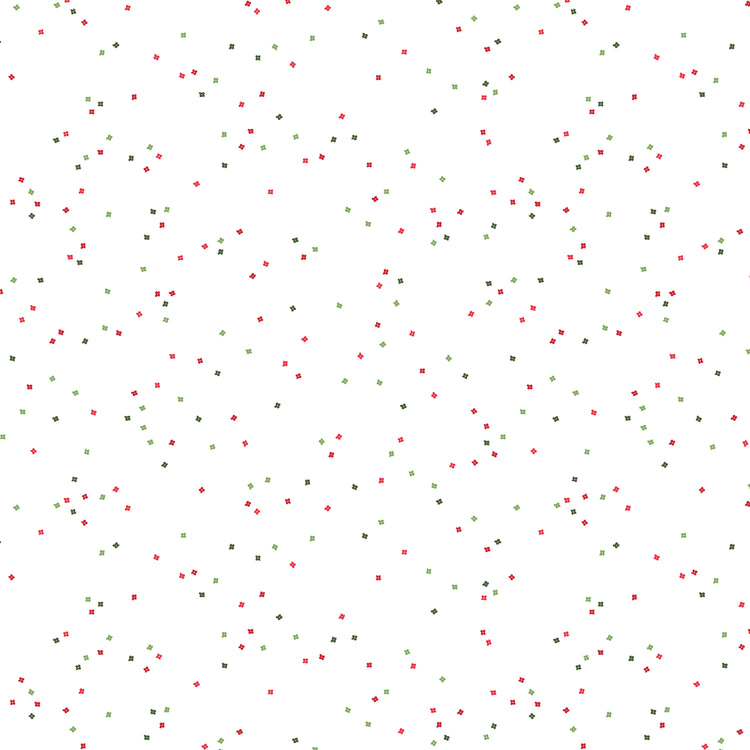 This fabric features tiny blossoms in red, green, and black on a solid white background. Printed on 100% quilting cotton. Machine wash cold / tumble dry low.
