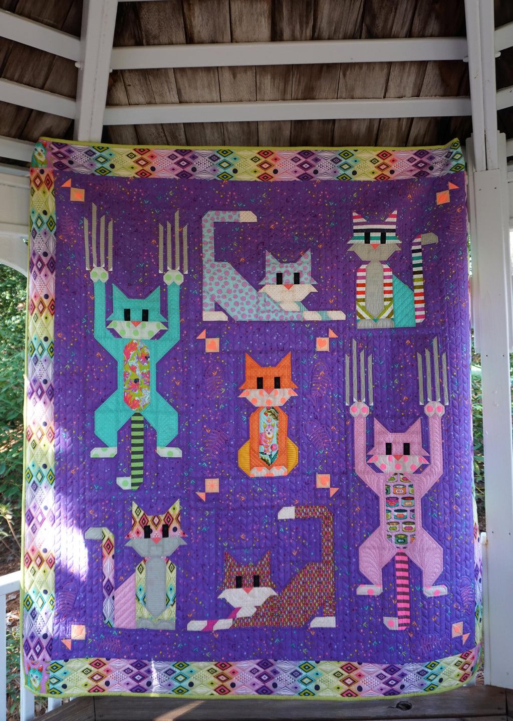 This quilt is traditionally pieced. The pattern is laid out in a way that also allows you to create any of the four different cat blocks individually for other projects or different quilt layouts. A background fabric cutting guide layout is also included to make the most of your fabric while cutting for either the small or large quilt. The cat blocks vary in size from 8” x 16” to 13” x 36.25”. The pattern is 32 pages, printed in full color and saddle stitched with a soft laminate cover.