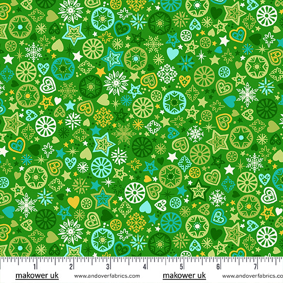 The "Christmas Brights" collection by Makower UK brings a Scandinavian-inspired charm to the holiday season, featuring vibrant reds, greens, blues, and whites. The playful holiday motifs and geometric designs bring a modern twist to festive decor. Perfect for creating cheerful and eye-catching quilts, table runners, and holiday accents.