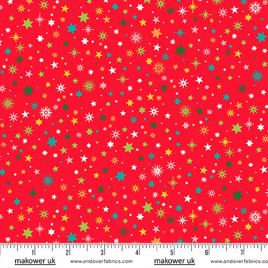 The "Christmas Brights" collection by Makower UK brings a Scandinavian-inspired charm to the holiday season, featuring vibrant reds, greens, blues, and whites. The playful holiday motifs and geometric designs bring a modern twist to festive decor. Perfect for creating cheerful and eye-catching quilts, table runners, and holiday accents.