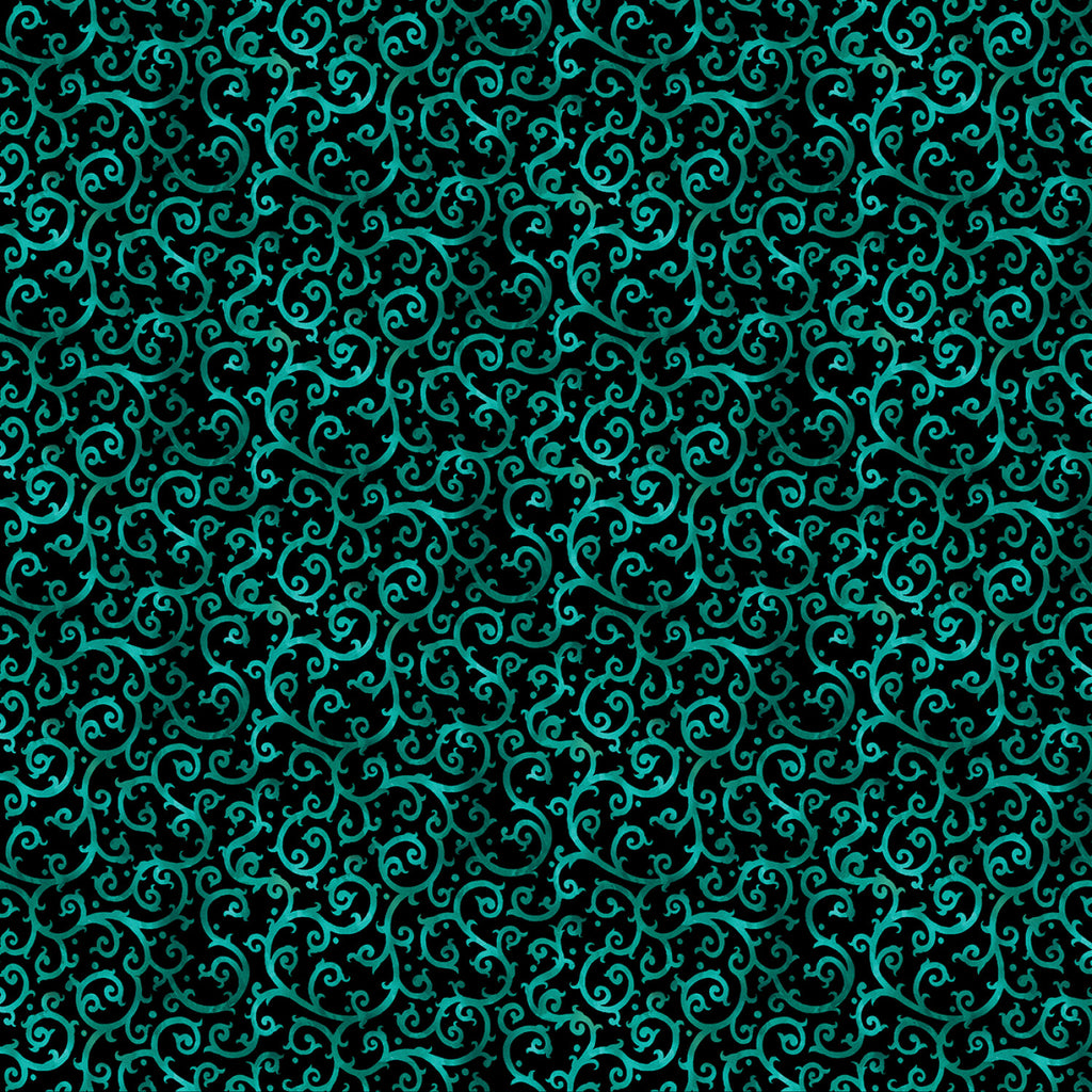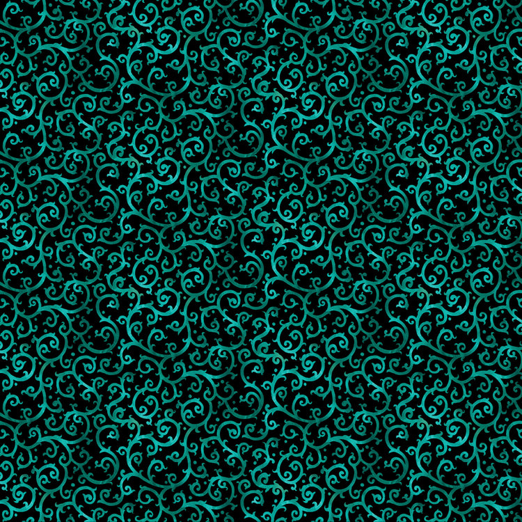 Christmas Spirit | Turquoise/Black Scrolling Splendor by David Galchutt for Benartex | 16277B-56