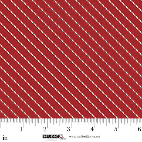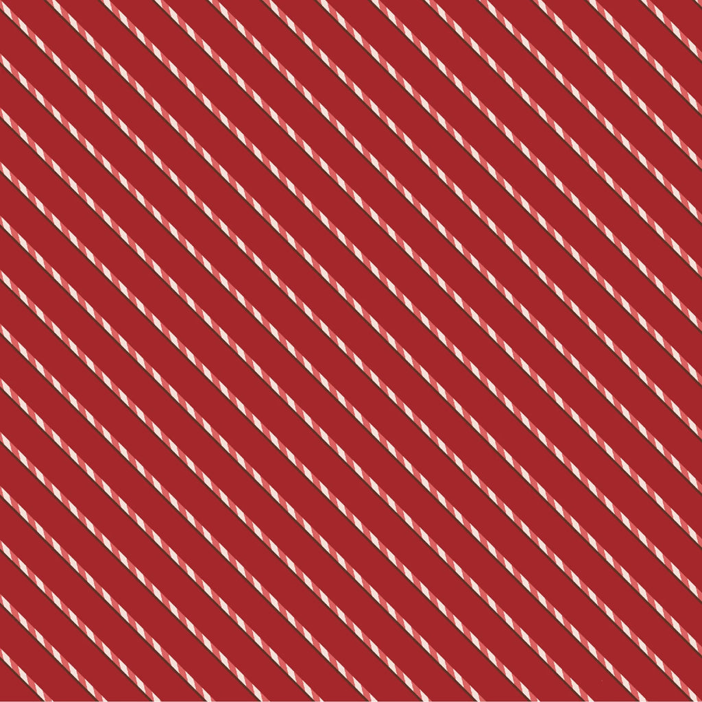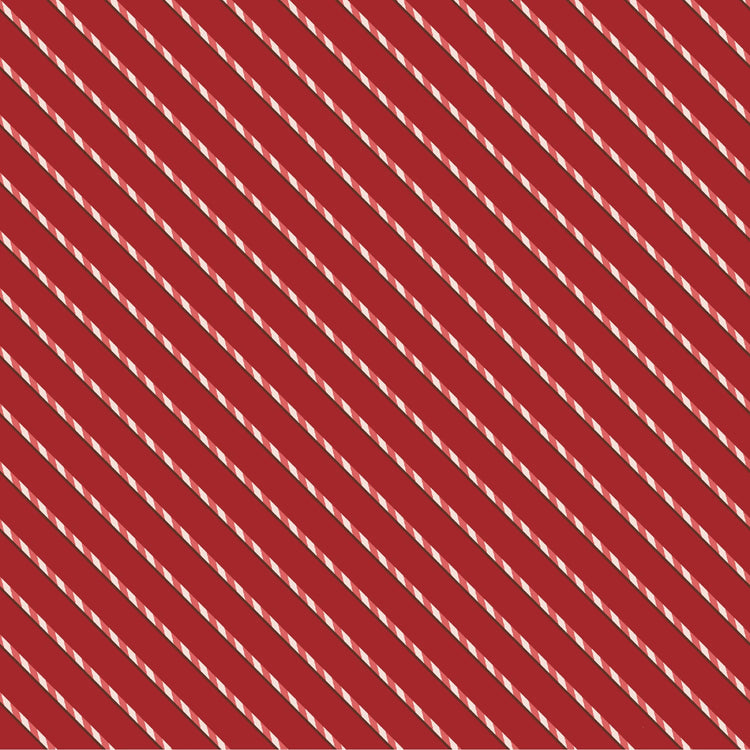 This 100% cotton print features classic red-and-white candy cane stripes set on a rich red background. Its simple diagonal stripe design makes it versatile for holiday sewing, perfect for quilt borders, sashing, or adding a festive accent to any Christmas project.
