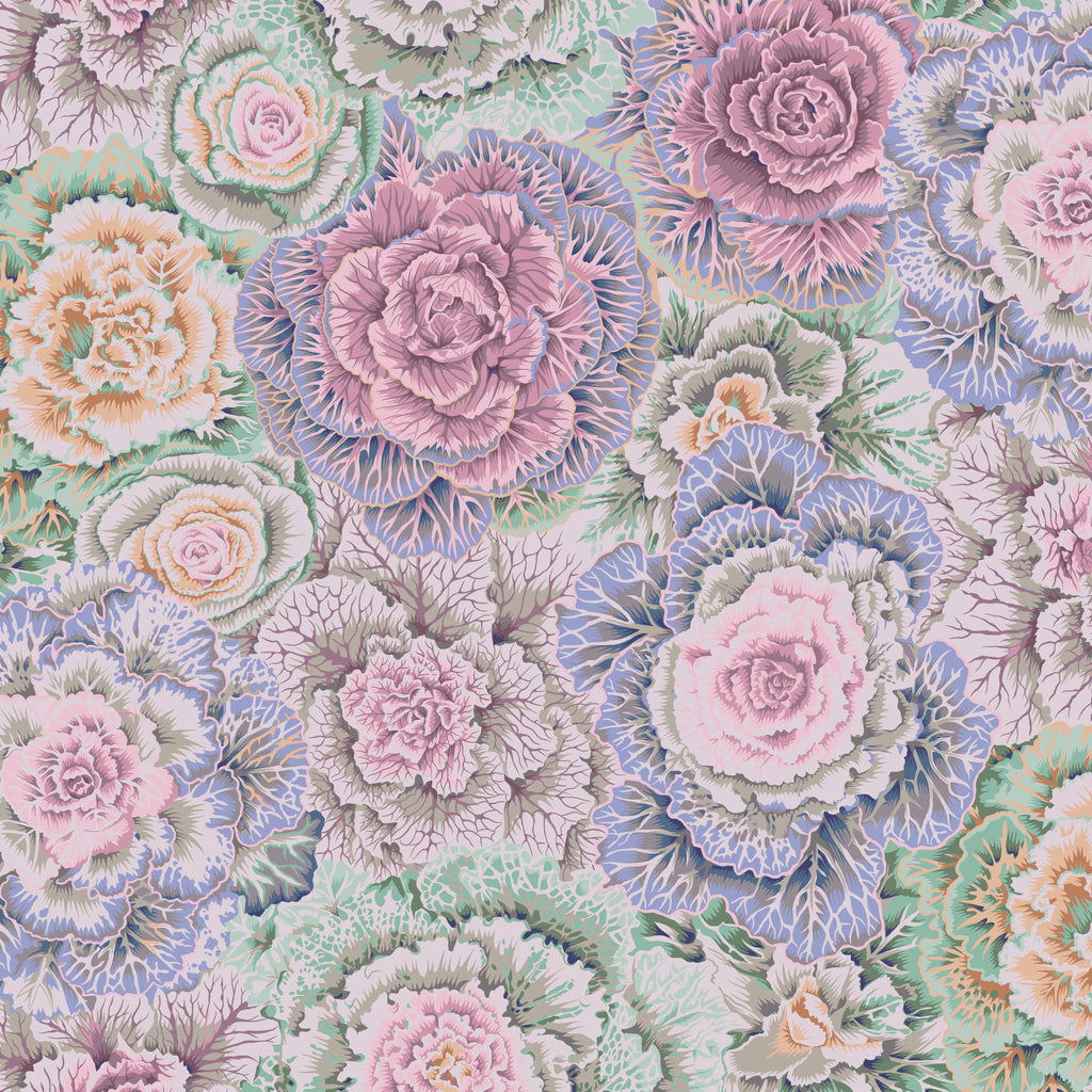 The Brassica print by Philip Jacobs for the Kaffe Fassett Collective brings the beauty of nature into your quilting projects. Inspired by the vibrant textures of cabbage leaves, this design combines bold colors with intricate details, making it a stunning choice for modern quilts, home decor, or any creative project. Printed on high-quality fabric, it's a striking way to add a touch of botanical elegance to your fabric collection.