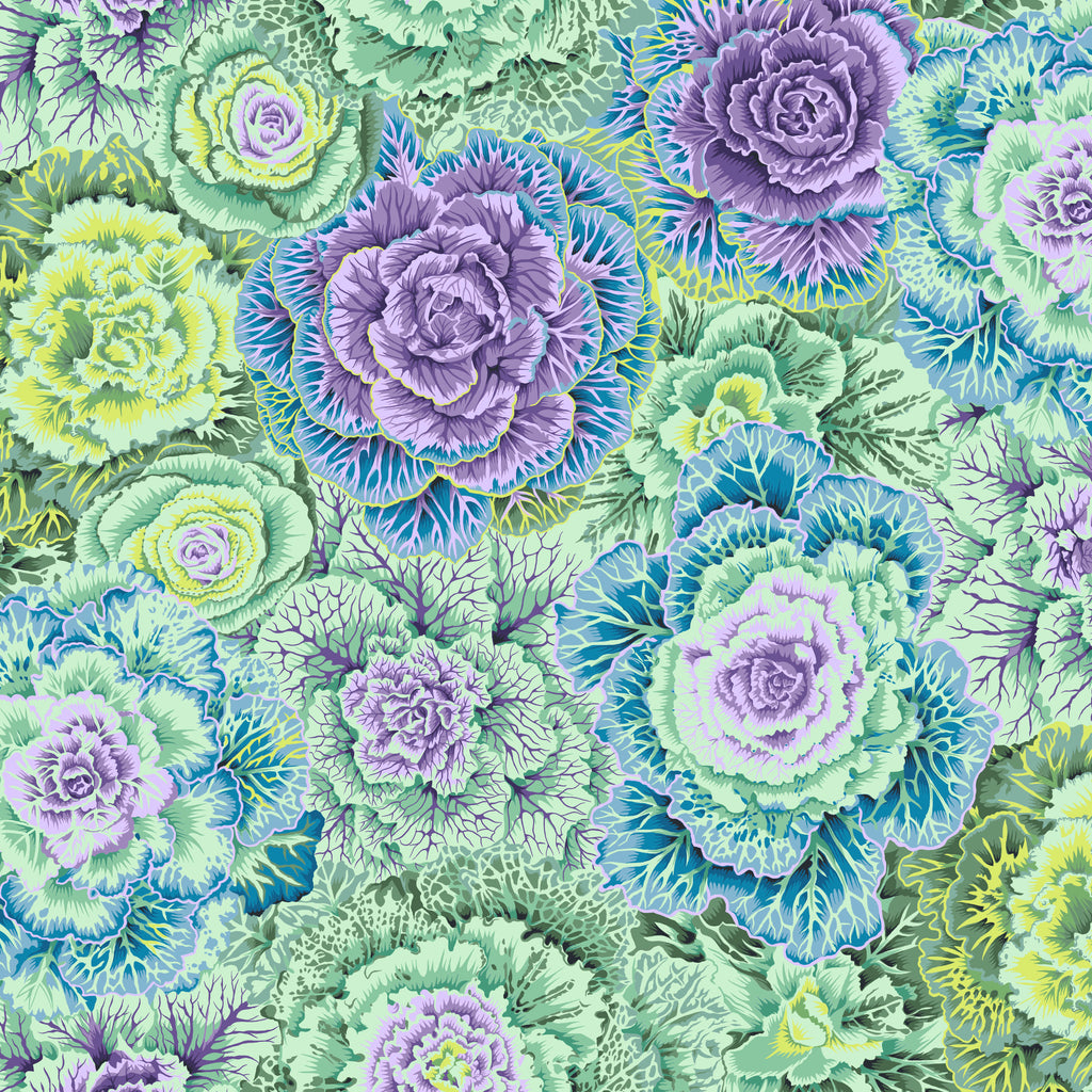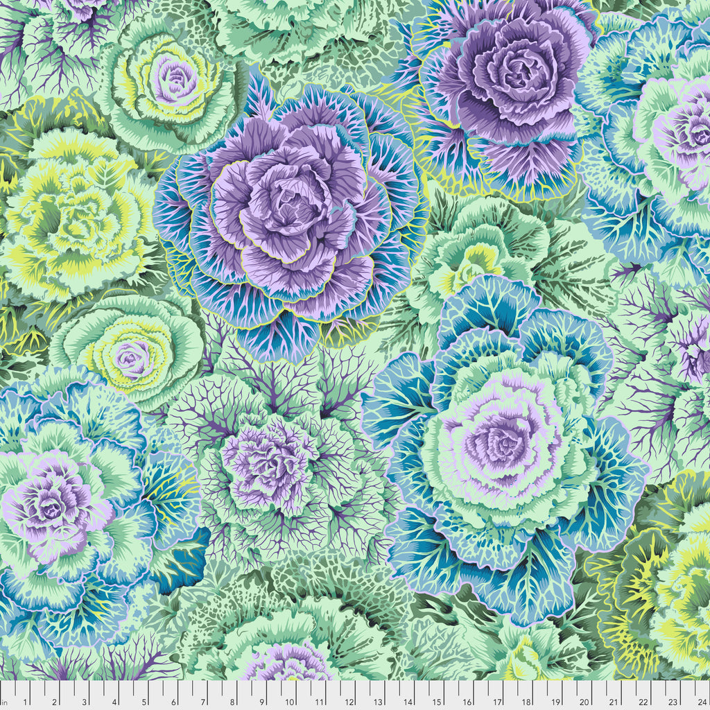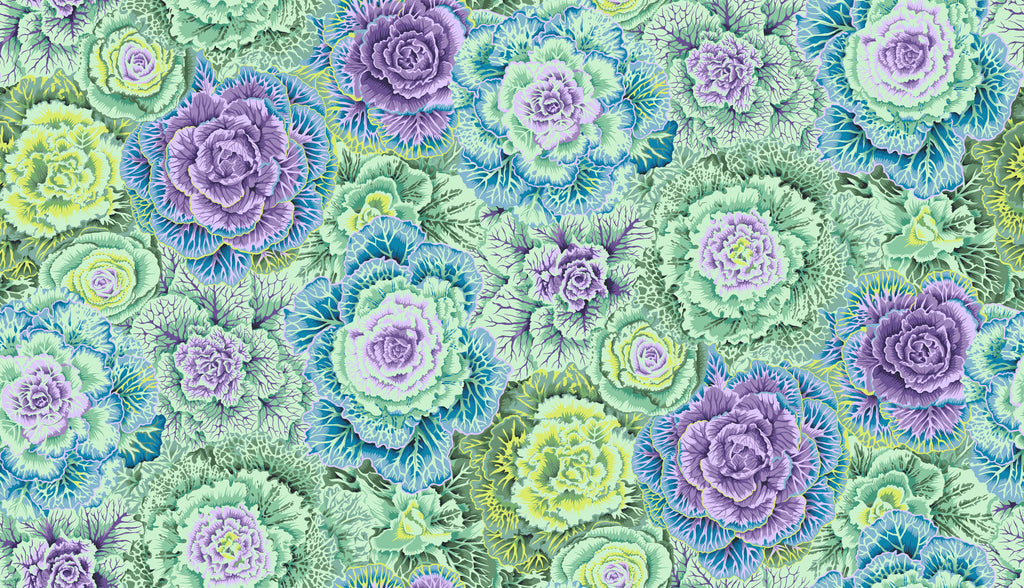 The Brassica print by Philip Jacobs for the Kaffe Fassett Collective brings the beauty of nature into your quilting projects. Inspired by the vibrant textures of cabbage leaves, this design combines bold colors with intricate details, making it a stunning choice for modern quilts, home decor, or any creative project. Printed on high-quality cotton, it's a striking way to add a touch of botanical elegance to your fabric collection.