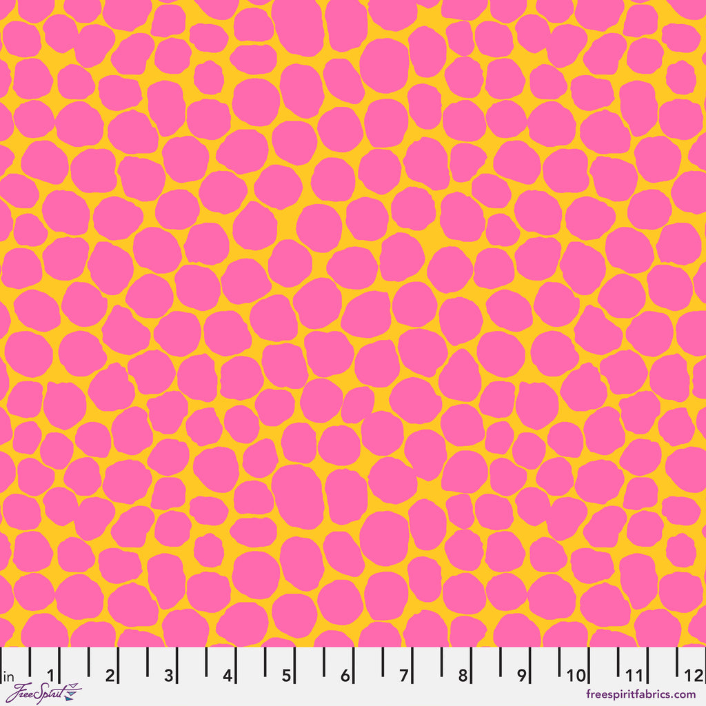 The "Jumble" pattern by Brandon Mably for the Kaffe Fassett Collective is a versatile blender featuring bold, irregular shapes in vibrant, contrasting colors. Its abstract design and playful energy make it perfect for adding depth and texture to quilts, while its mix of strong hues allows it to blend seamlessly with other fabrics in a variety of projects. Ideal for adventurous quilters looking to add a lively touch to their work. Available in a range of colorways to complement any project.
