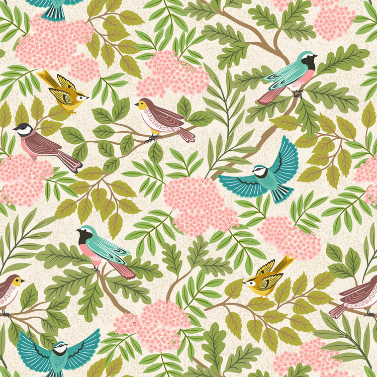Clearbury Down is a fabric collection inspired by the peaceful English countryside and chalky downlands. Imagine hedgerows full of cow parsley, bees buzzing in wildflowers, and swallows swooping through the air. Trees with birds singing and animals playing in the woodland.