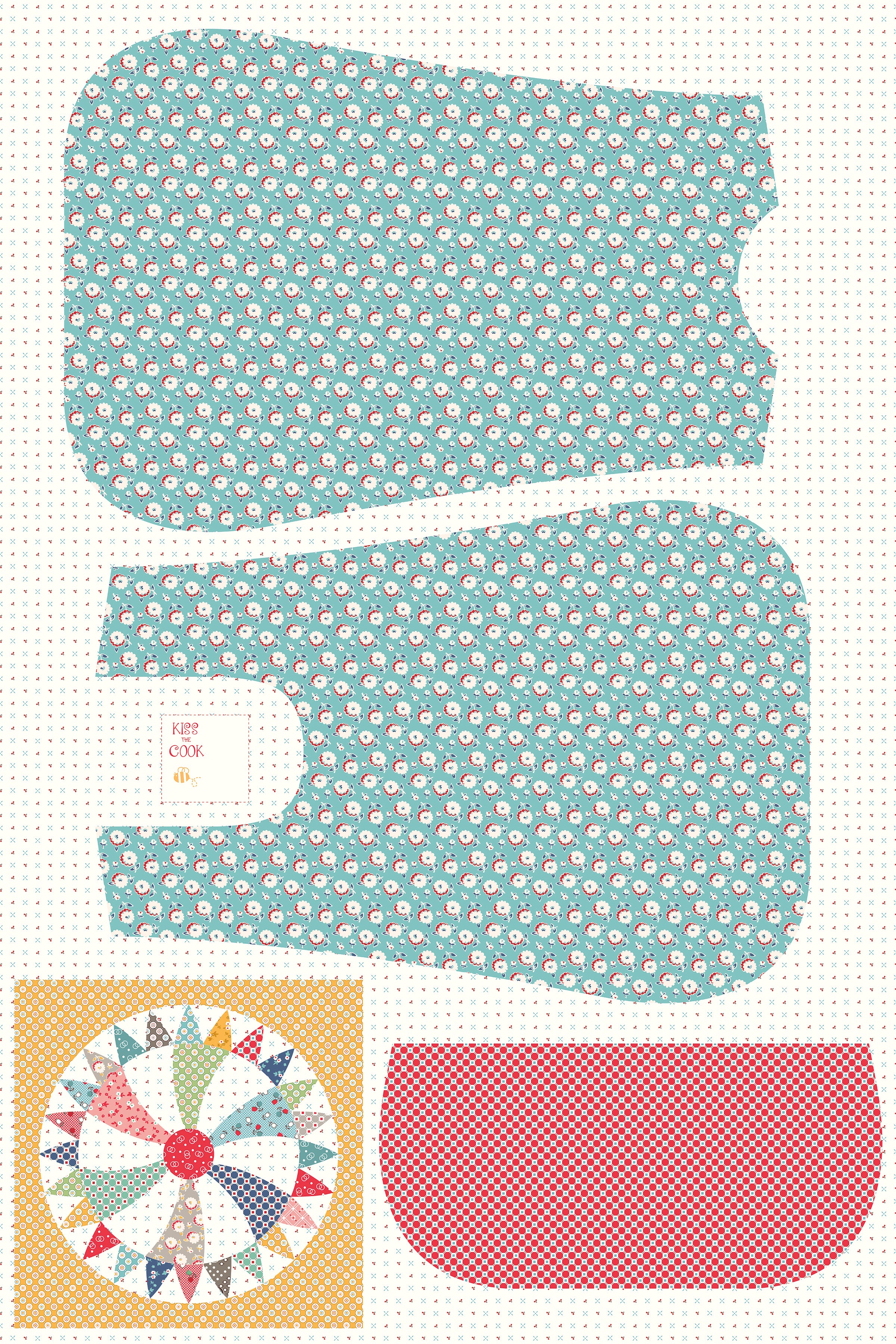 This home decor panel is printed on lightweight canvas and features pieces to make an apron. The instructions can be found here. Bonus 14" vintage block would be perfect for making a pillow.