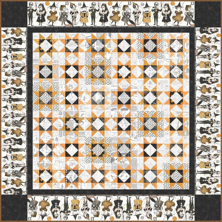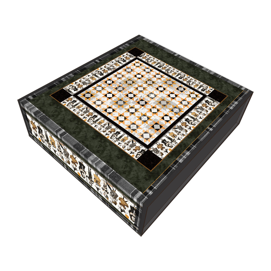 The Sawtooth Scene Quilt Kit by J. Wecker Frisch of Great Joy Studio features the imaginative Costume Maker’s Act II collection and includes the pattern and fabric for the quilt top and binding (backing not included). The finished quilt measures 84" x 84". This project is ideal for confident beginners and experienced quilters alike, with traditional piecing techniques and bold, theatrical prints that add visual drama. Kit comes in a sturdy solid box with a printed belly band label, approximately 11" x 12 1/4" x 3 1/2", making it a great gift or collector’s item.