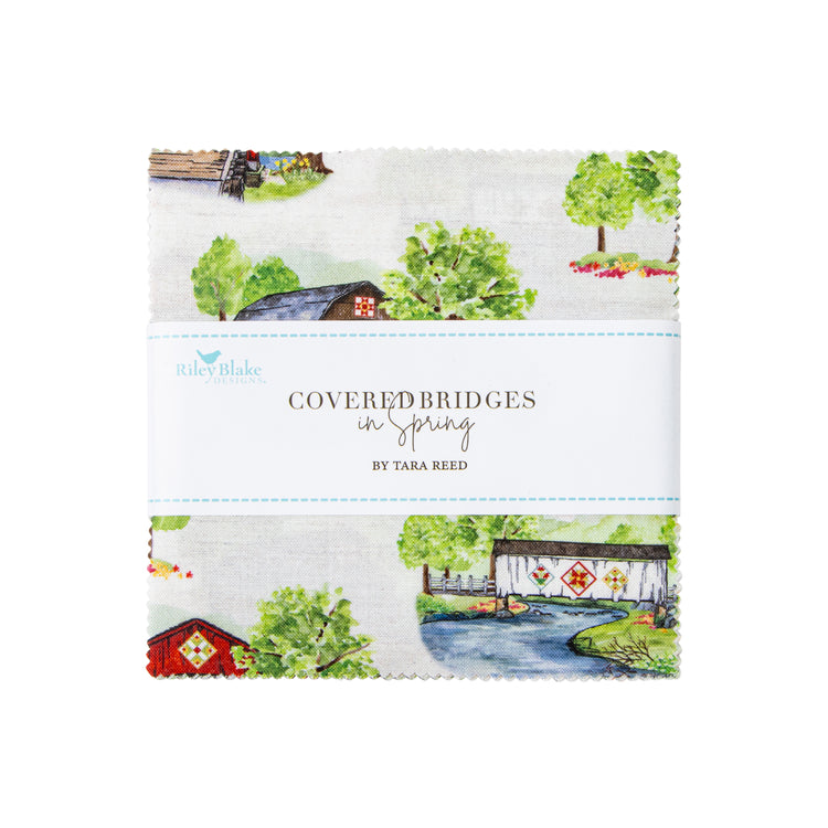 This precut bundle includes 42 squares (5" x 5") from the Covered Bridges in Spring collection by Tara Reed for Riley Blake Designs. Each print will be included 2-3 times in the bundle.