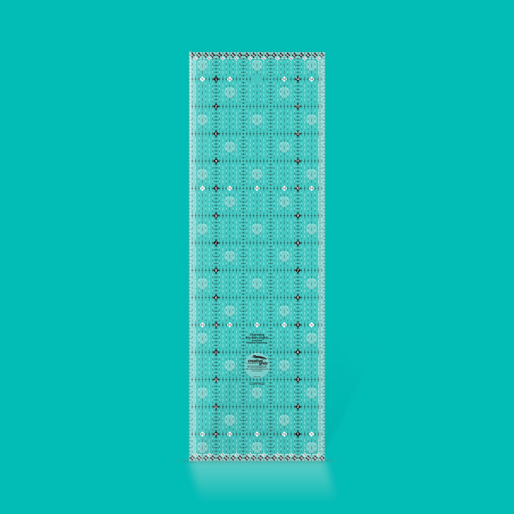 Perfect size to cut 5-inch charm squares quickly and easily.Dashed one inch markings increase visibility - which improves accuracy.Highlights the 1/8markings which are hard to use on traditional rulers. Black and white dashed 1/8 inch markings show on both light and dark fabrics.The 3/16 inch marking printed along the length of each side of the ruler are the perfect width for cutting wool bias strips for appliques.