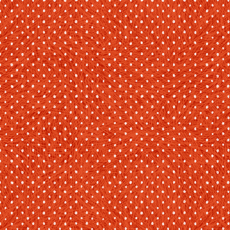 This vibrant fabric features a lively design of small white pin dots scattered across a rich orange background, creating a playful and dynamic visual texture. The pattern evokes a sense of whimsy, perfect for projects that require a touch of fun and brightness. Made from high-quality cotton, this fabric is ideal for a variety of crafting and sewing projects, offering both durability and comfort.