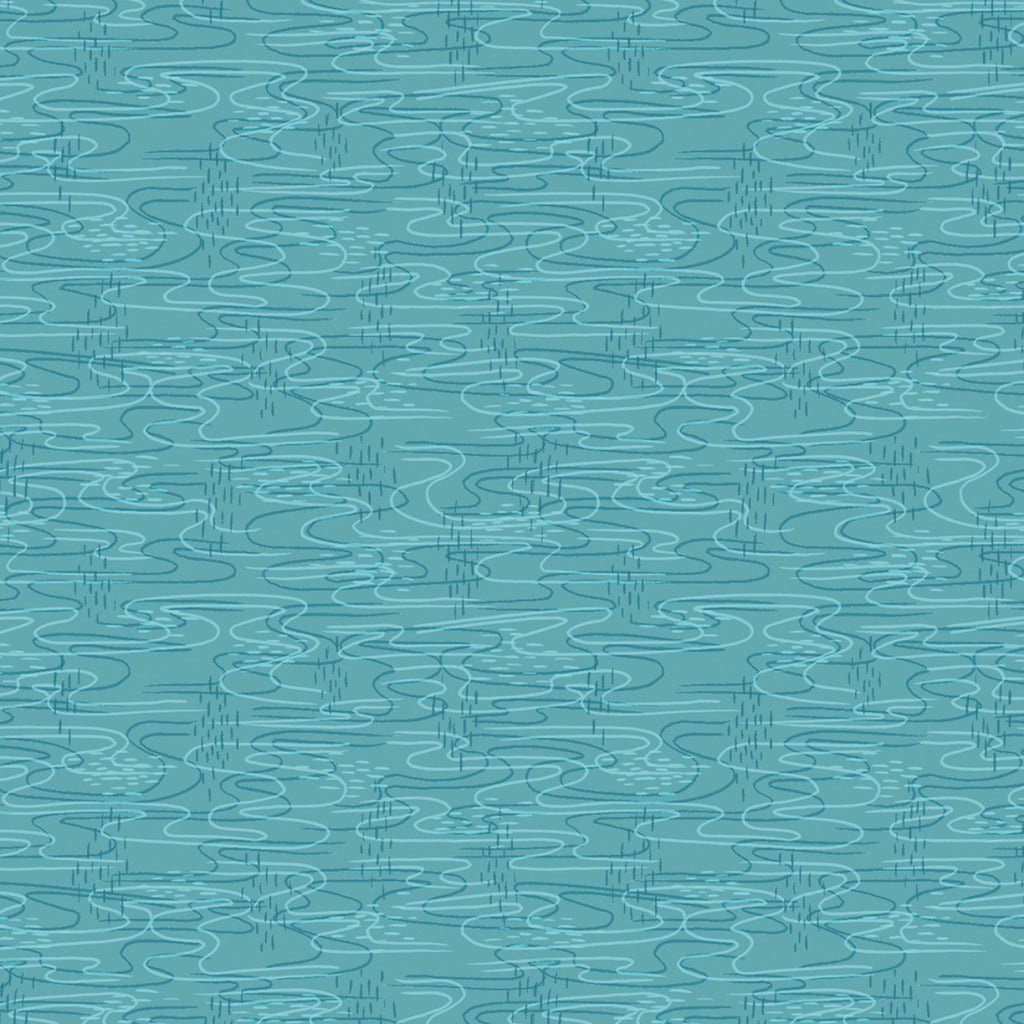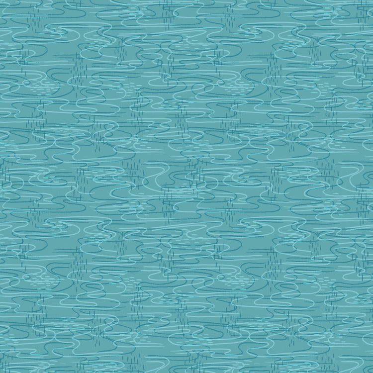 This fabric features a serene design reminiscent of gentle waves, with abstract, flowing lines in varying shades of teal and turquoise, creating a tranquil water-like effect. Ideal for projects that require a calming aesthetic, this fabric is perfect for both commercial and personal sewing projects, offering a versatile backdrop for various creative expressions.