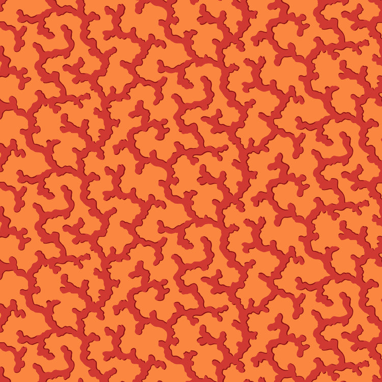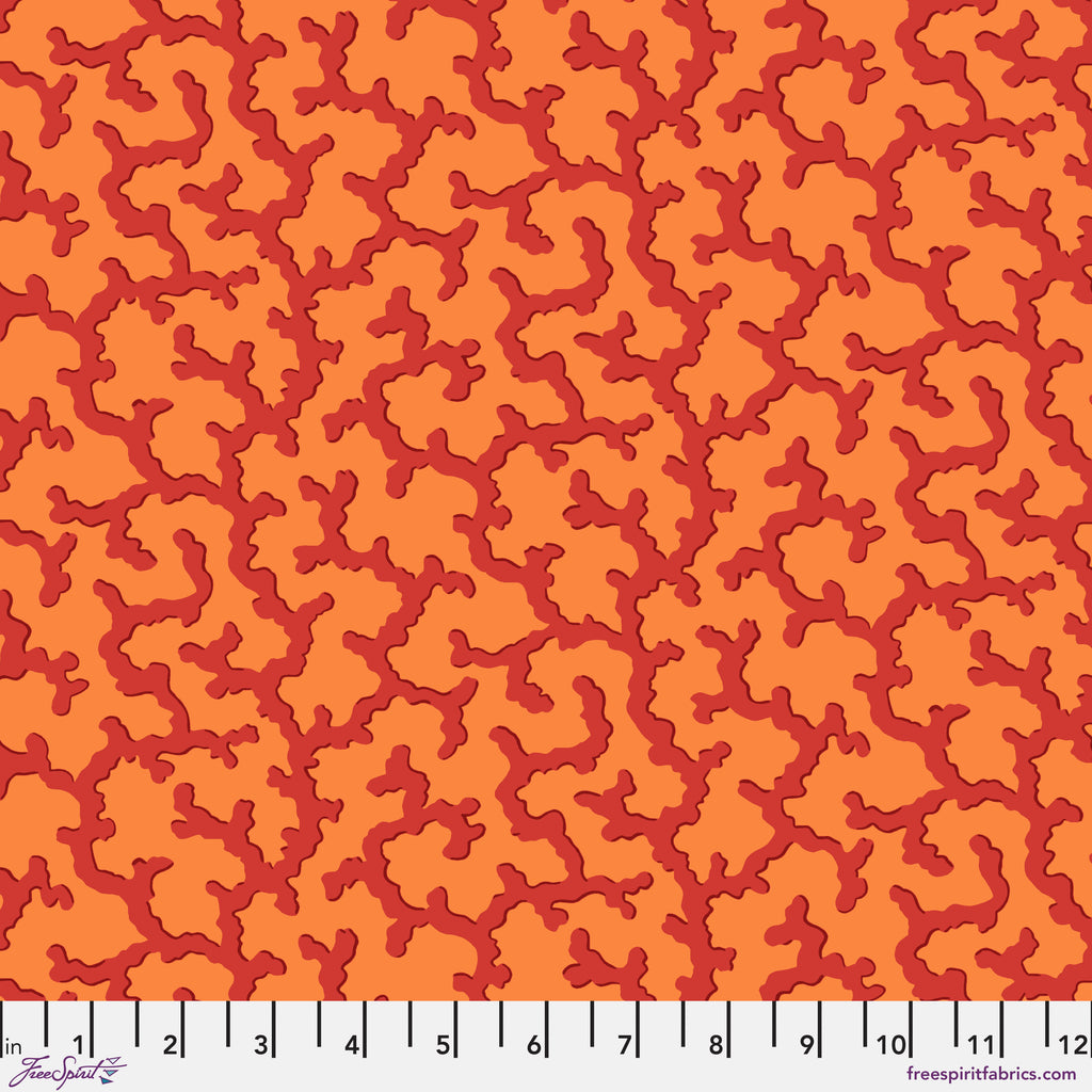 This fabric by Kaffe Fassett features a design with coral-like branches in rich red tones. The pattern's textural appearance and subtle color variations provide depth and dimension, making it a versatile choice for various projects. Made from 100% cotton and measuring 44 inches wide, this fabric is ideal for quilting, apparel, and home décor, adding a sophisticated touch to any creation.