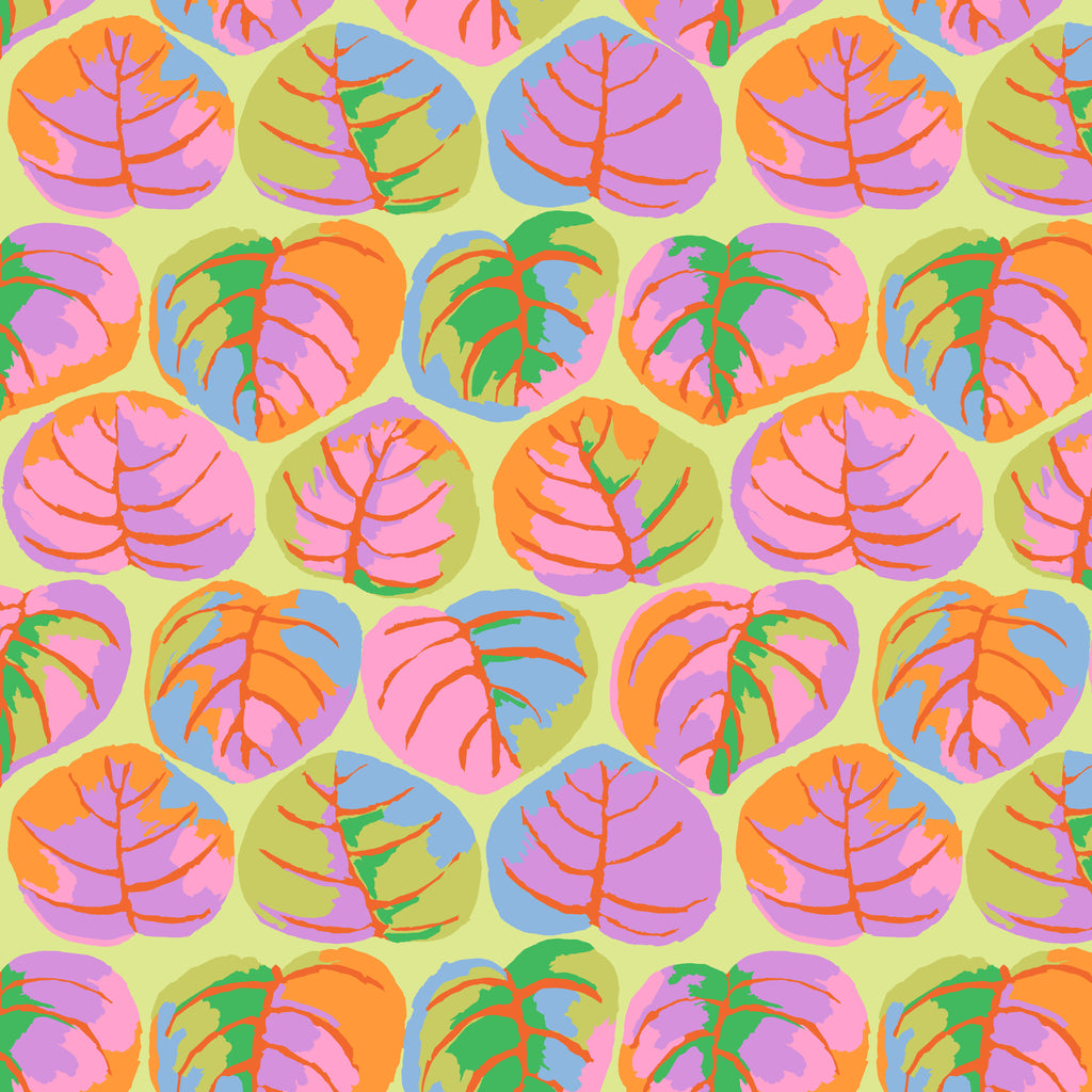 This fabric from the Kaffe Fassett Collective features a striking palm leaves design in a dreamy pastel palette. The delicate blend of colors adds a fresh and airy feel, while the flowing leaf shapes create a dynamic, nature-inspired look. Made from 100% cotton and measuring 44 inches wide, this fabric is perfect for quilting, apparel, and home décor, bringing a subtle yet lively touch to any project.
