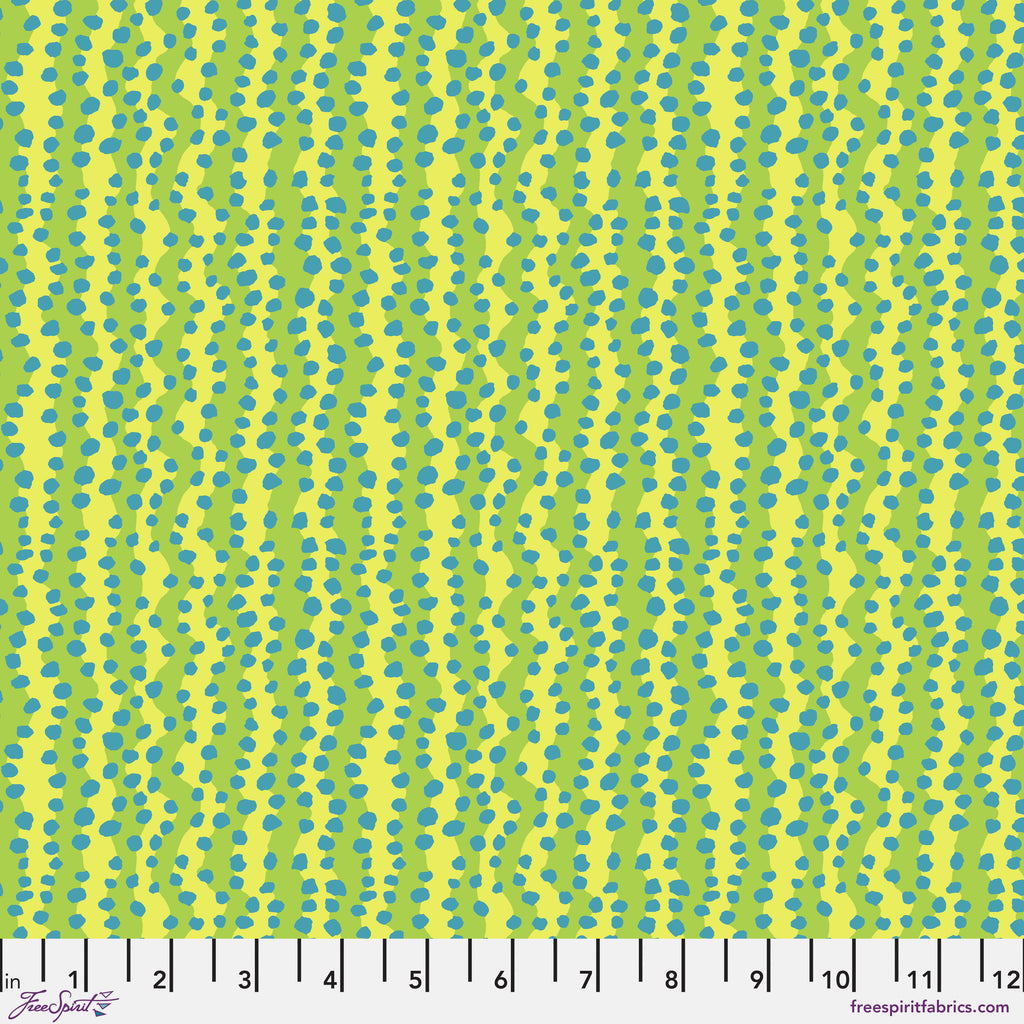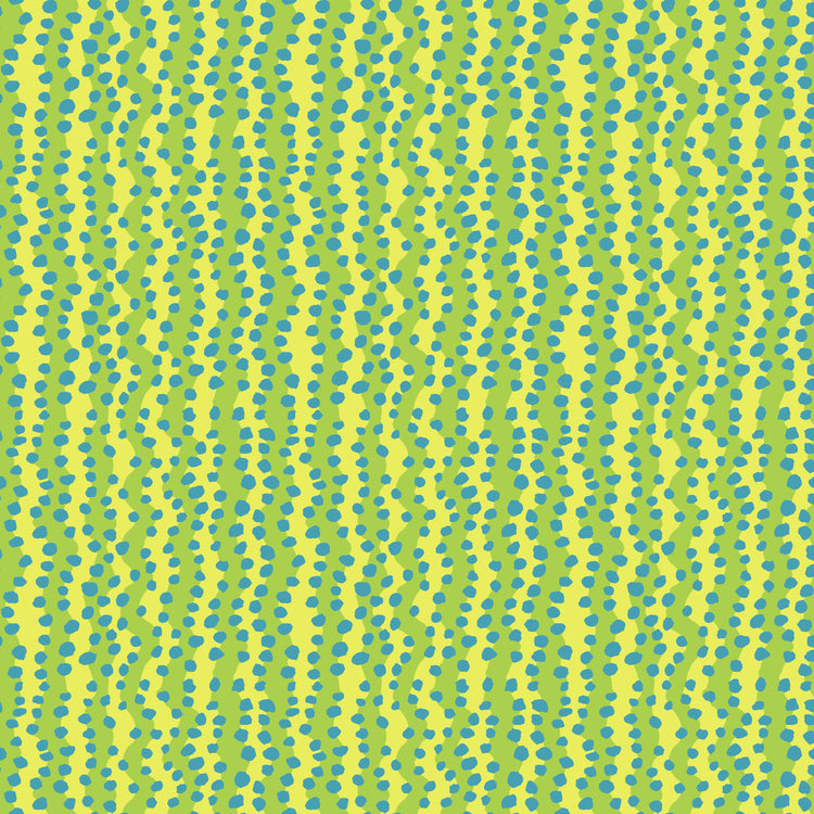 This fabric by Brandon Mably for the Kaffe Fassett Collective features a bold, rhythmic stripe design with an organic, bubble-like texture. The warm yellow hues and irregular pattern create a vibrant, energetic look, perfect for adding movement and depth to quilts, apparel, and home décor. Made from 100% cotton and measuring 44 inches wide, this fabric is a striking yet versatile choice that pairs beautifully with other Kaffe collections.