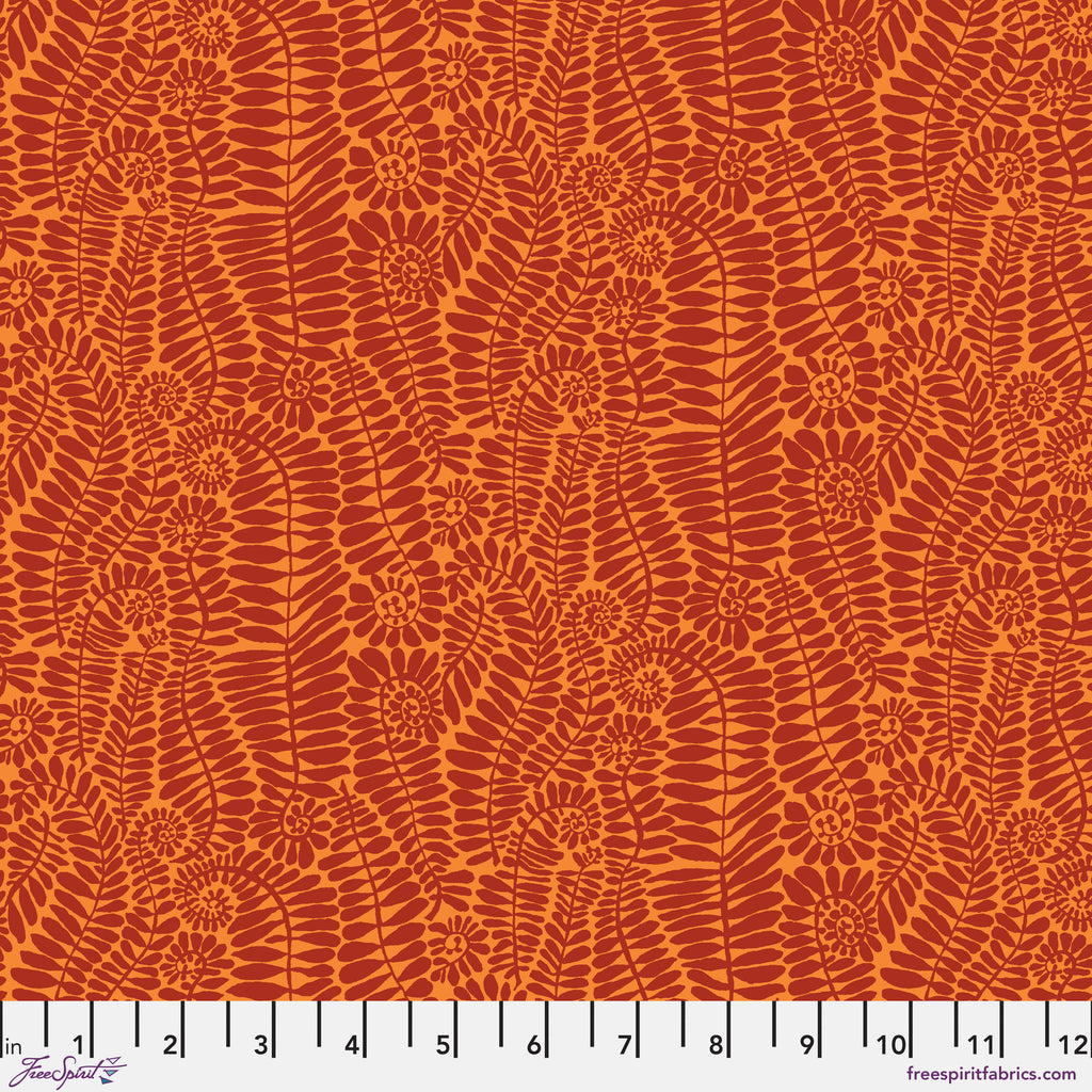 This fabric by Brandon Mably for the Kaffe Fassett Collective features delicate, intertwining fronds in a rich melon hue. The subtle tone-on-tone design adds depth and texture, making it a versatile blender that complements both bold and muted prints. Made from 100% cotton and measuring 44 inches wide, this fabric is perfect for quilting, apparel, and home décor, seamlessly enhancing any project with its organic elegance.