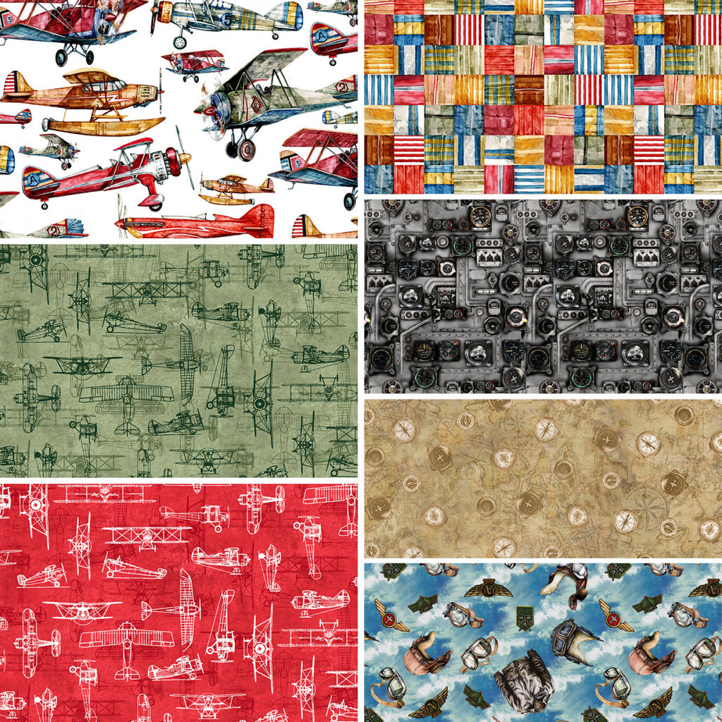 First in Flight by Michael Moon for 3 Wishes Fabric celebrates the golden age of aviation with vintage aircraft, blueprints, pilot gear, maps, and control panel designs. With a nostalgic color palette and weathered textures, this 7-piece digitally printed collection is perfect for quilts, apparel, and aviation-inspired décor. Made from 100% cotton.