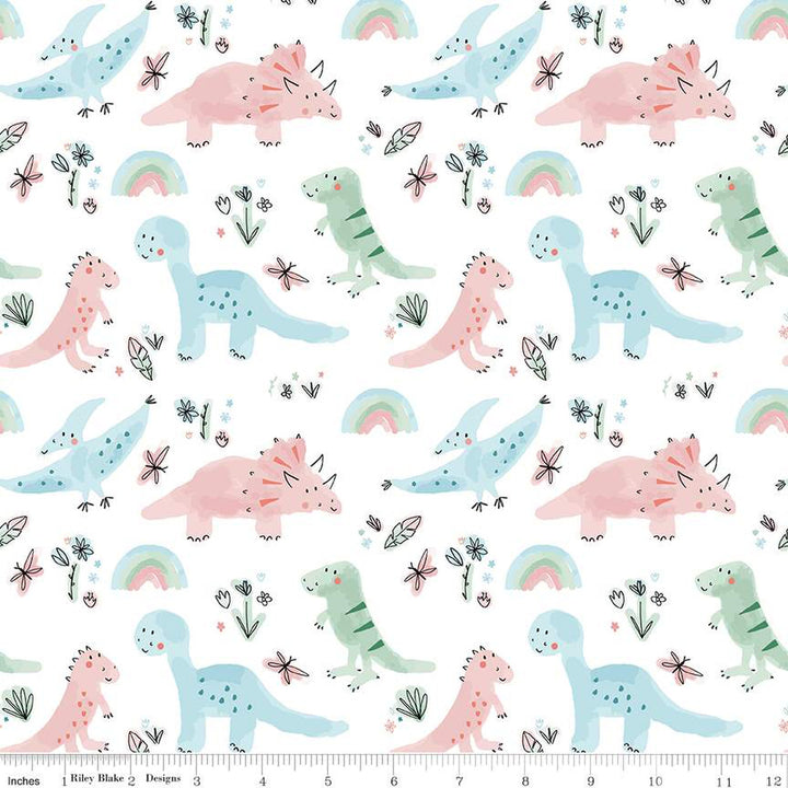 Designer Flannel | Dinosaurs White from Riley Blake Designs | F14696-WHITE