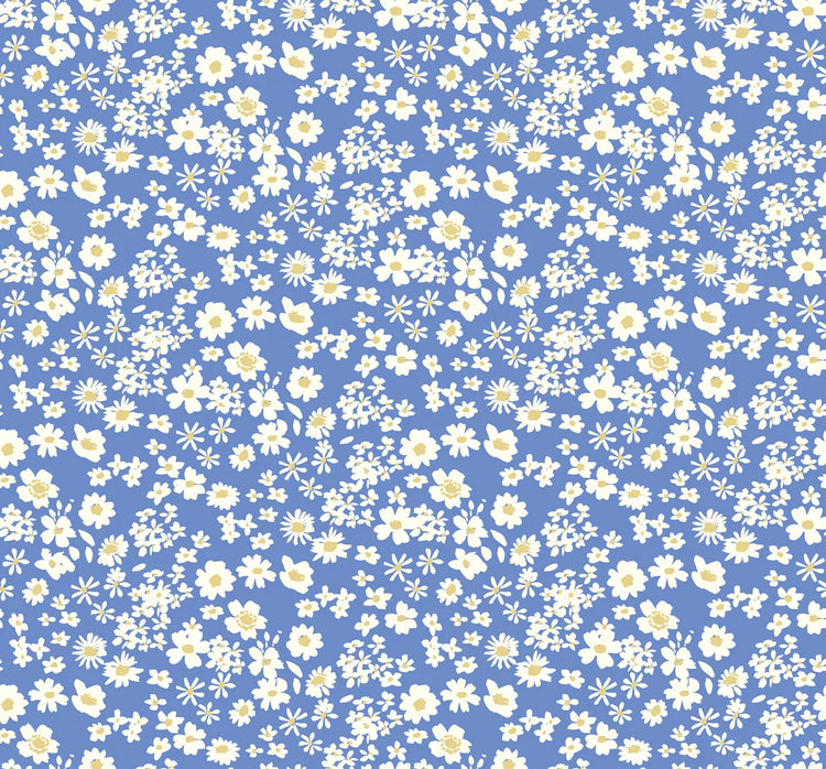 This delightful fabric features a charming ditsy print of small cornflowers scattered across a soft blue background, evoking a whimsical and airy feel perfect for spring and summer projects. The design's delicate floral pattern lends itself beautifully to a variety of sewing projects, from light dresses to children's clothing, ensuring a fresh and playful aesthetic.