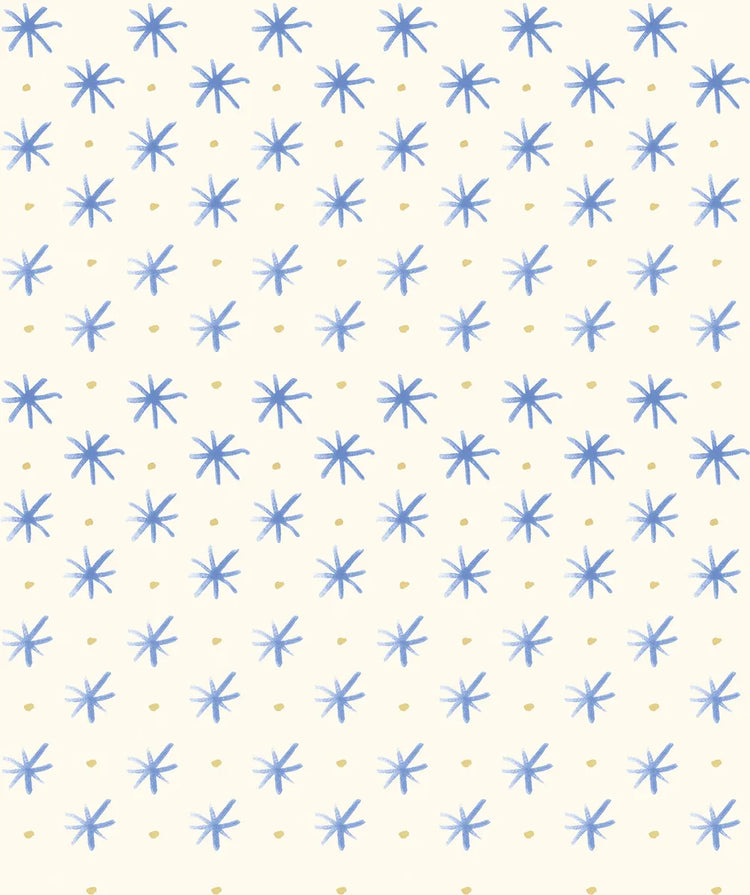 This delightful fabric features a charming pattern of blue stars scattered across a light background, creating a whimsical and airy design perfect for a variety of sewing projects. The stars are painted in a soft, watercolor style, adding a touch of artistic flair to any creation. This fabric's gentle aesthetic makes it suitable for children's clothing, home decor, or any project requiring a light, playful touch.