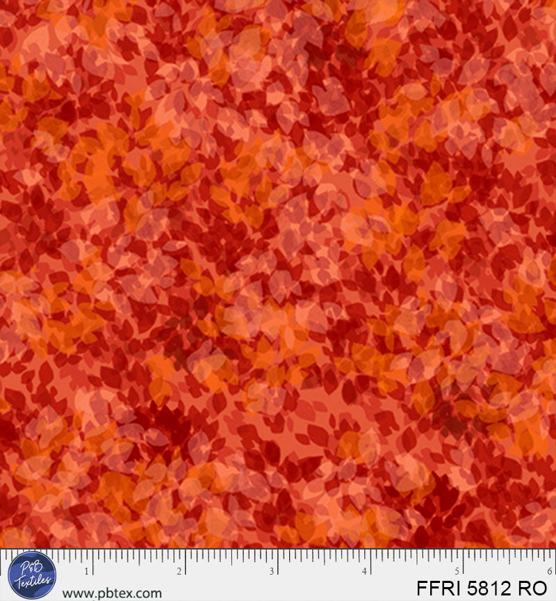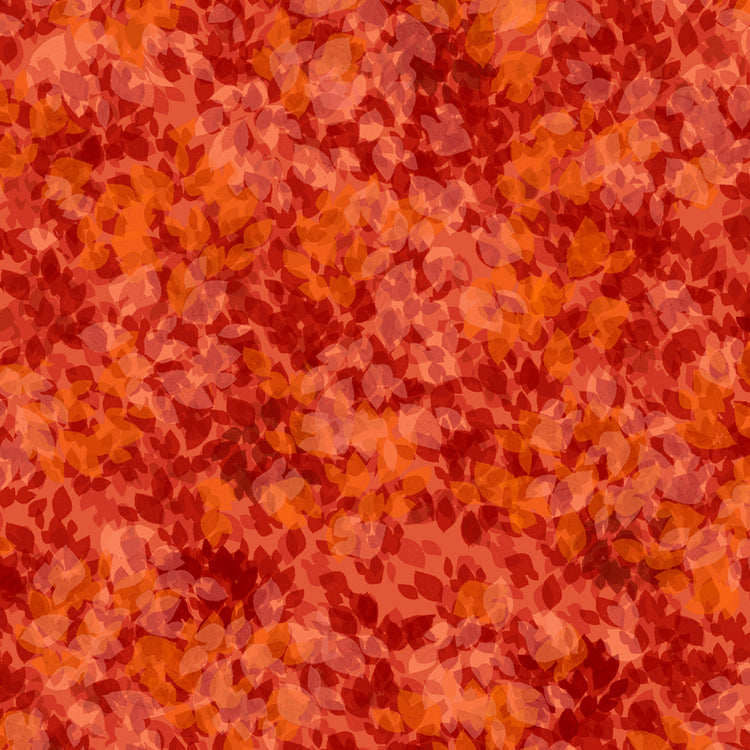This vibrant fabric features a tonal leaf blender design with an array of overlapping leaves in shades of red, orange, and pink, creating a rich, autumnal effect. The pattern is subtle yet dynamic, offering a beautiful texture that enhances any project with a touch of nature's warmth. Ideal for quilting, apparel, or home decor, this fabric brings a cohesive blend of colors that can stand alone or complement other designs.