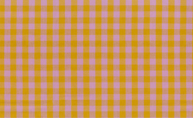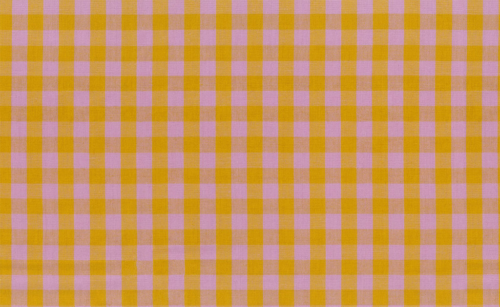Unexpected and delightful, this yarn-dyed gingham pairs mustard gold with orchid pink in a high-contrast check. The color mixing and woven texture create visual motion and tactile appeal.
