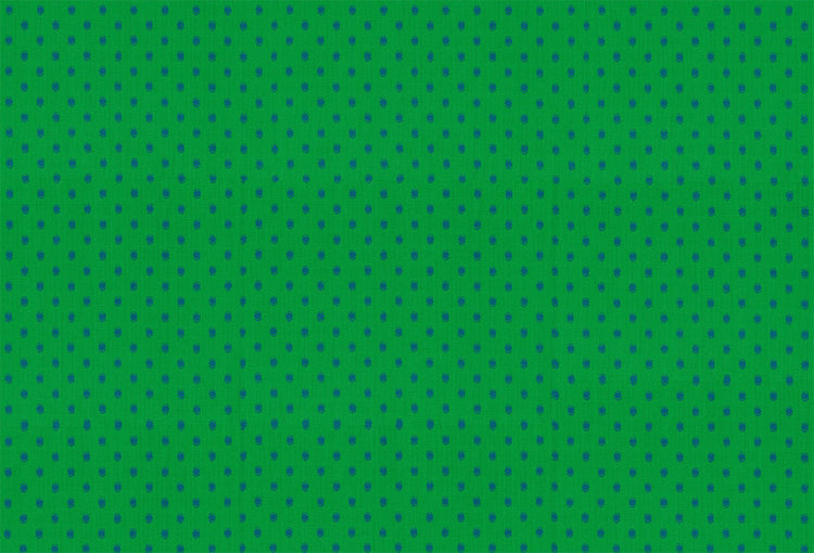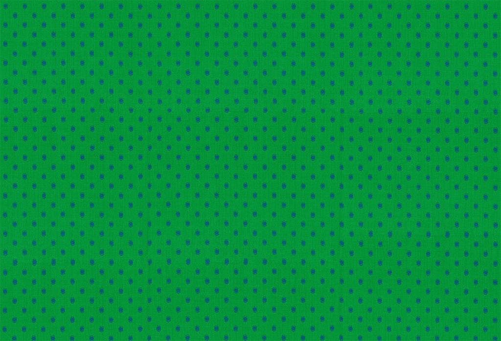 A vivid green base plays host to scattered cobalt blue dots in this lively yarn-dyed design. The woven structure adds tactile interest, while the dot motif keeps it playful and grounded.