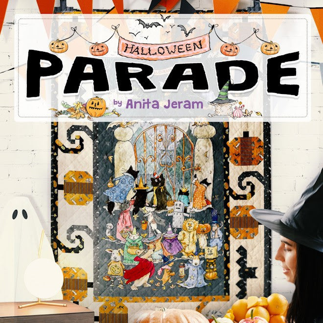 It's all treat and no trick when Anita Jeram's whimsical animals turn out for Halloween! Plenty of bats, ghosts, and pumpkins and a traditional orange-and-black palette make for a classic seasonal look that veers more cute than scary. Kids and adults alike will love picking out their favorite scenes on spooky season quilts.