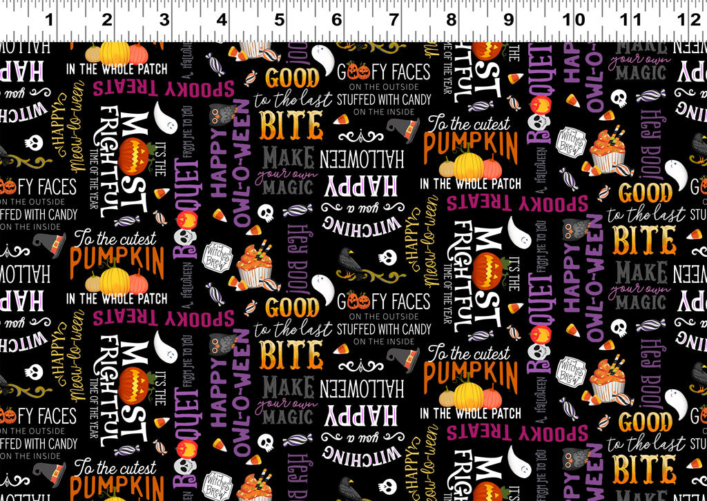The "Hey Boo!" fabric collection by Michael Zindell for Clothworks is a charming and playful Halloween-themed collection. This collection features adorable ghosts, friendly bats, pumpkins, and spooky yet cute motifs in a delightful color palette of black, orange, white, and purple. Perfect for creating festive quilts, home decor, and accessories, "Hey Boo!" brings a fun and lighthearted touch to Halloween projects. Whether you're making trick-or-treat bags, table runners, or seasonal decor, this collection adds just the right amount of spooky charm to your creations.