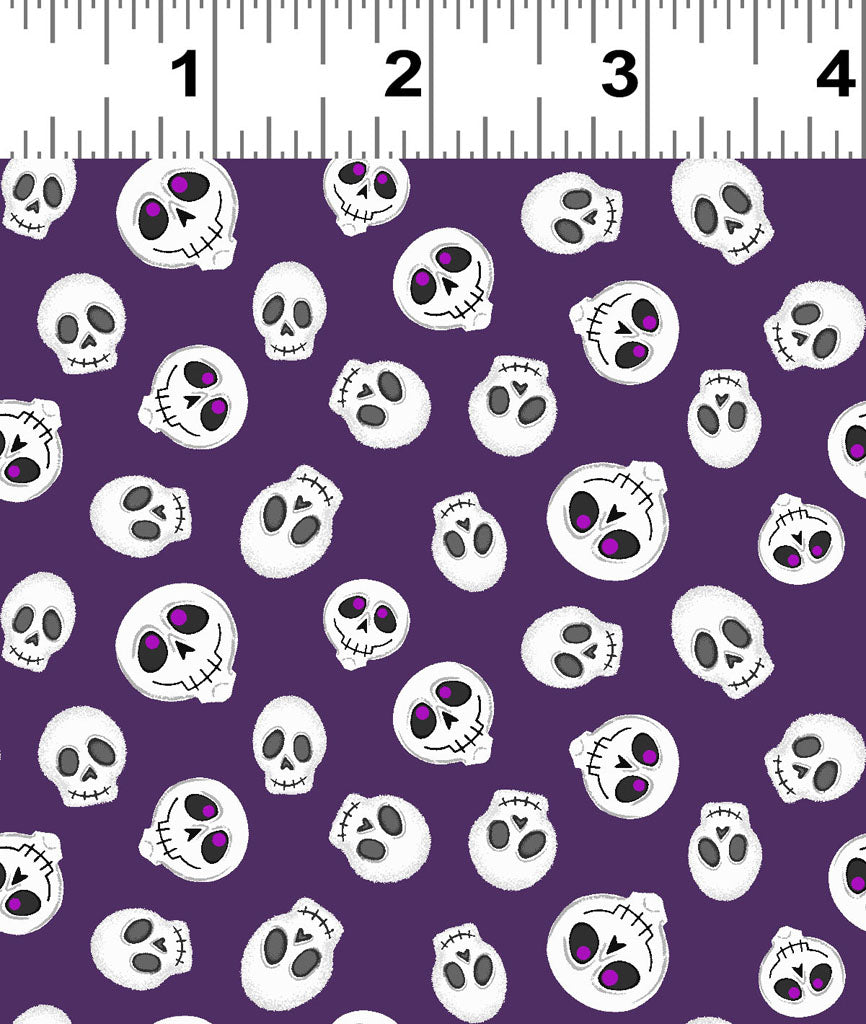 Hey Boo! | Dark Purple Skulls by Michael Zindell for Clothworks | Y3845-28
