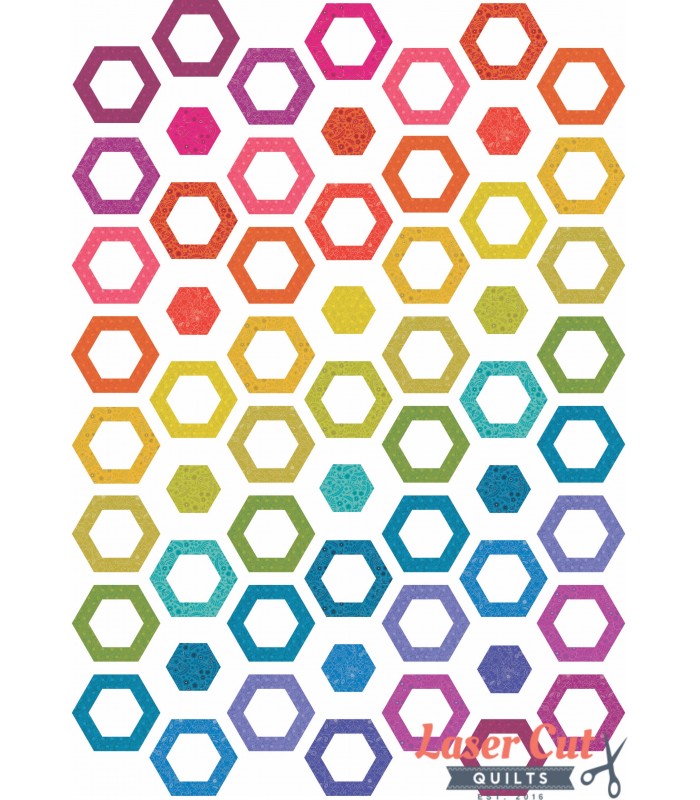 Hollow Hexies uses Alison Glass' 2017 Sun Prints in a neat, multi-directional ombre, creating a spin on traditional paper-pieced hexies. 40in x 56in lap quilt.Includes: Pattern, Pre-Fused and Laser Cut Applique Pieces, Layout Template, Background Fabric, Binding Fabric. Fabric Required: 2 5/8 Yard Backing Optional Tools: Applique Pressing Sheet, Light Box, Marking Tool