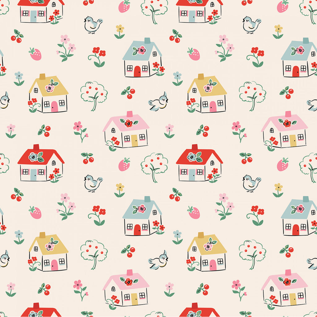 The Home Sweet Home fabric collection by Elea Lutz for Poppie Cotton is full of vintage charm and sweet nostalgia. It features cozy cottages, strawberries, bluebirds, cross-stitch designs, and dainty florals in a warm palette of reds, pinks, greens, blues, creams, and yellows. Perfect for quilts, aprons, and other heartwarming projects, this collection brings a touch of timeless beauty to your creations.