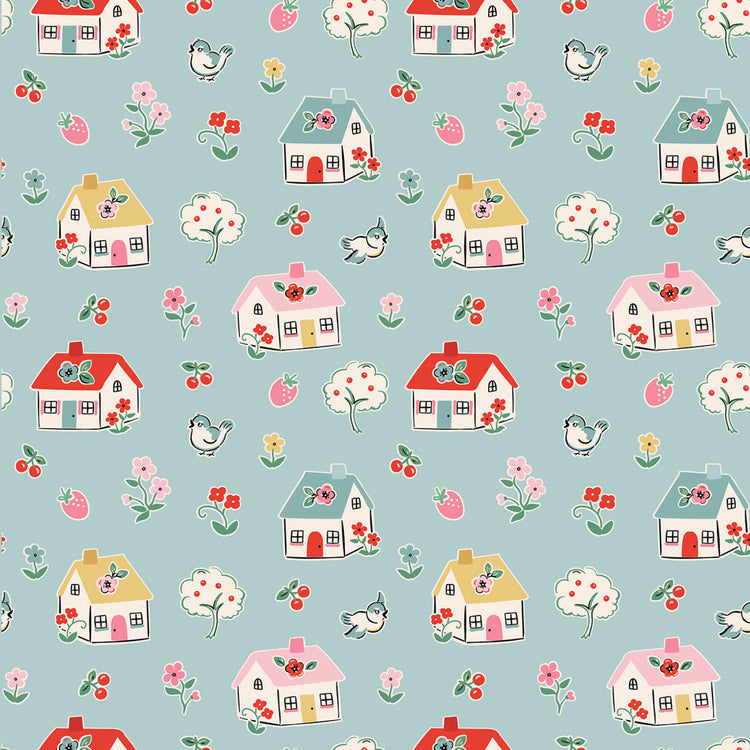 The Home Sweet Home fabric collection by Elea Lutz for Poppie Cotton is full of vintage charm and sweet nostalgia. It features cozy cottages, strawberries, bluebirds, cross-stitch designs, and dainty florals in a warm palette of reds, pinks, greens, blues, creams, and yellows. Perfect for quilts, aprons, and other heartwarming projects, this collection brings a touch of timeless beauty to your creations.