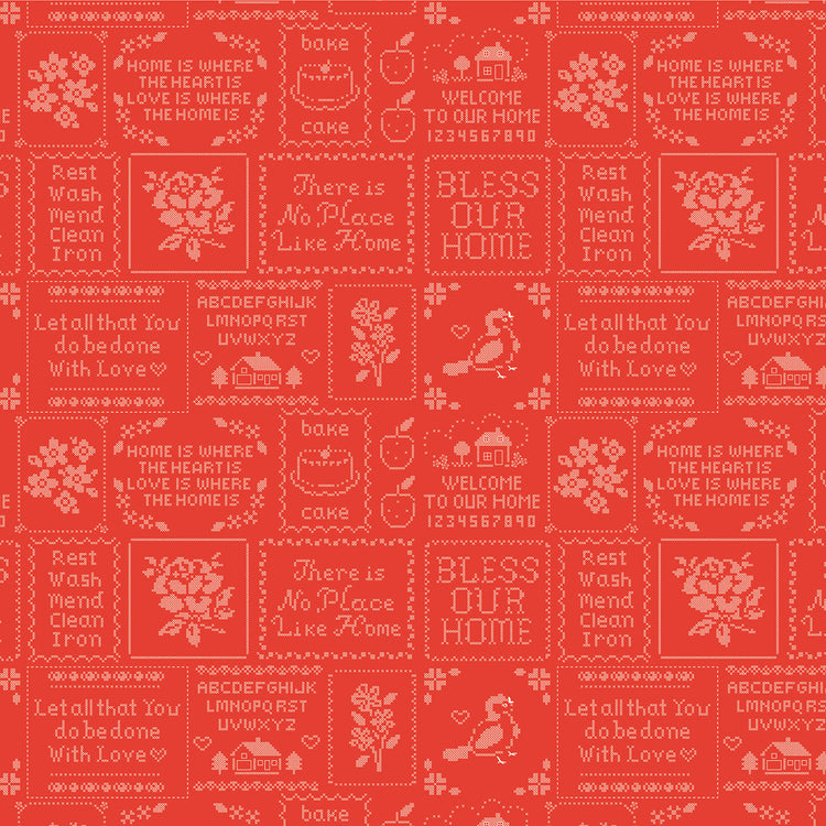 The Home Sweet Home fabric collection by Elea Lutz for Poppie Cotton is full of vintage charm and sweet nostalgia. It features cozy cottages, strawberries, bluebirds, cross-stitch designs, and dainty florals in a warm palette of reds, pinks, greens, blues, creams, and yellows. Perfect for quilts, aprons, and other heartwarming projects, this collection brings a touch of timeless beauty to your creations.