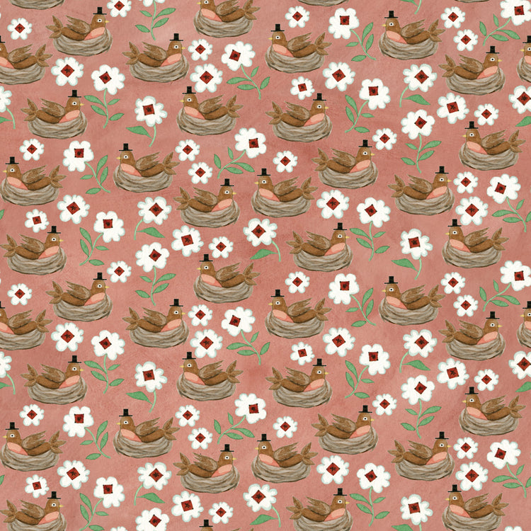 Spring is here with Teresa Kogut's designer fabric collection, Hop Hop Hooray! Cheerful watercolor folk art features an array of bunnies and their friends celebrating the arrival of spring. The coordinating prints blossom with happy wreaths, blooms and bees, daisies, and the most dapper little robin. Let your imagination take flight and create quilts and home decor projects with this striking color palette of flax, coral, teal, and black. 100% cotton.