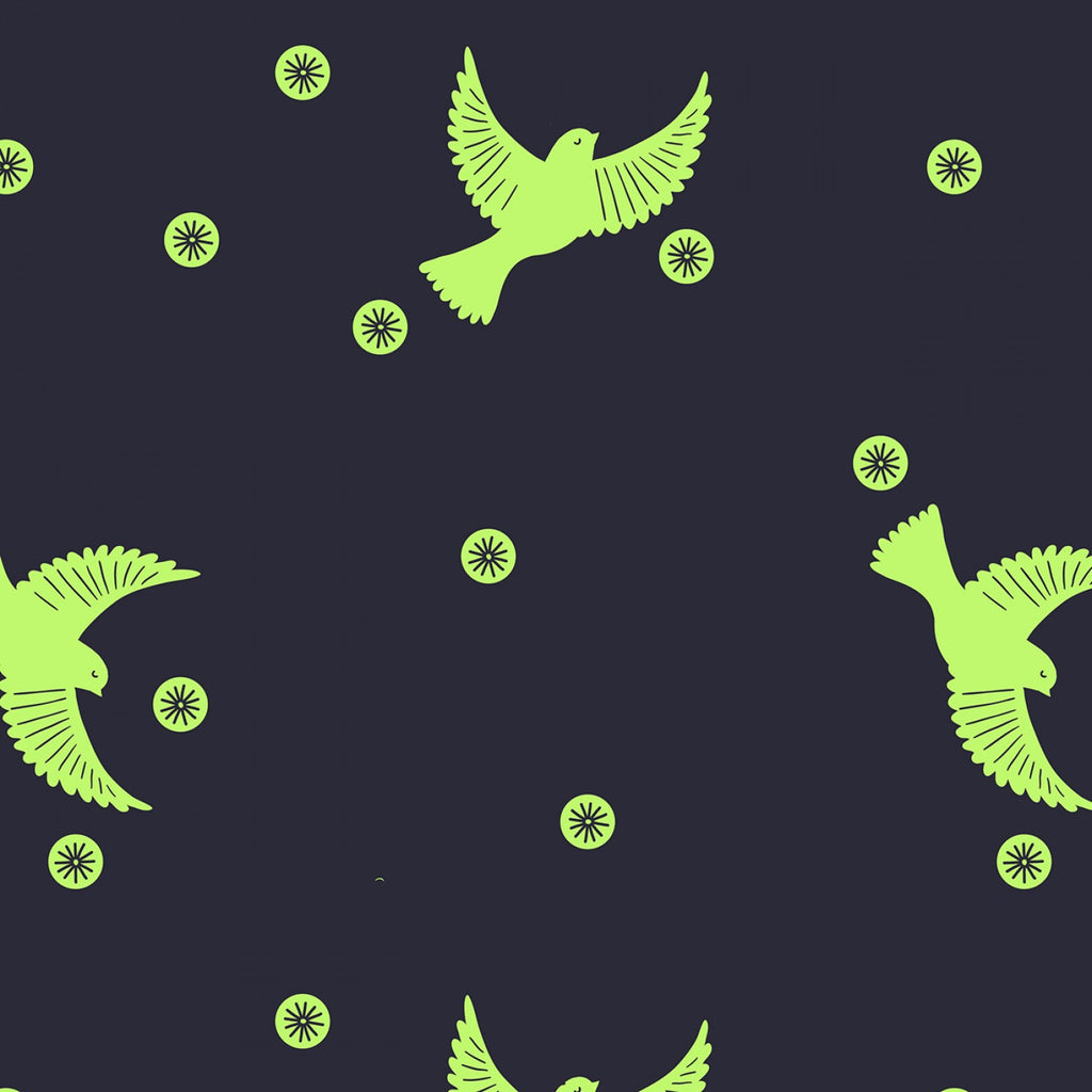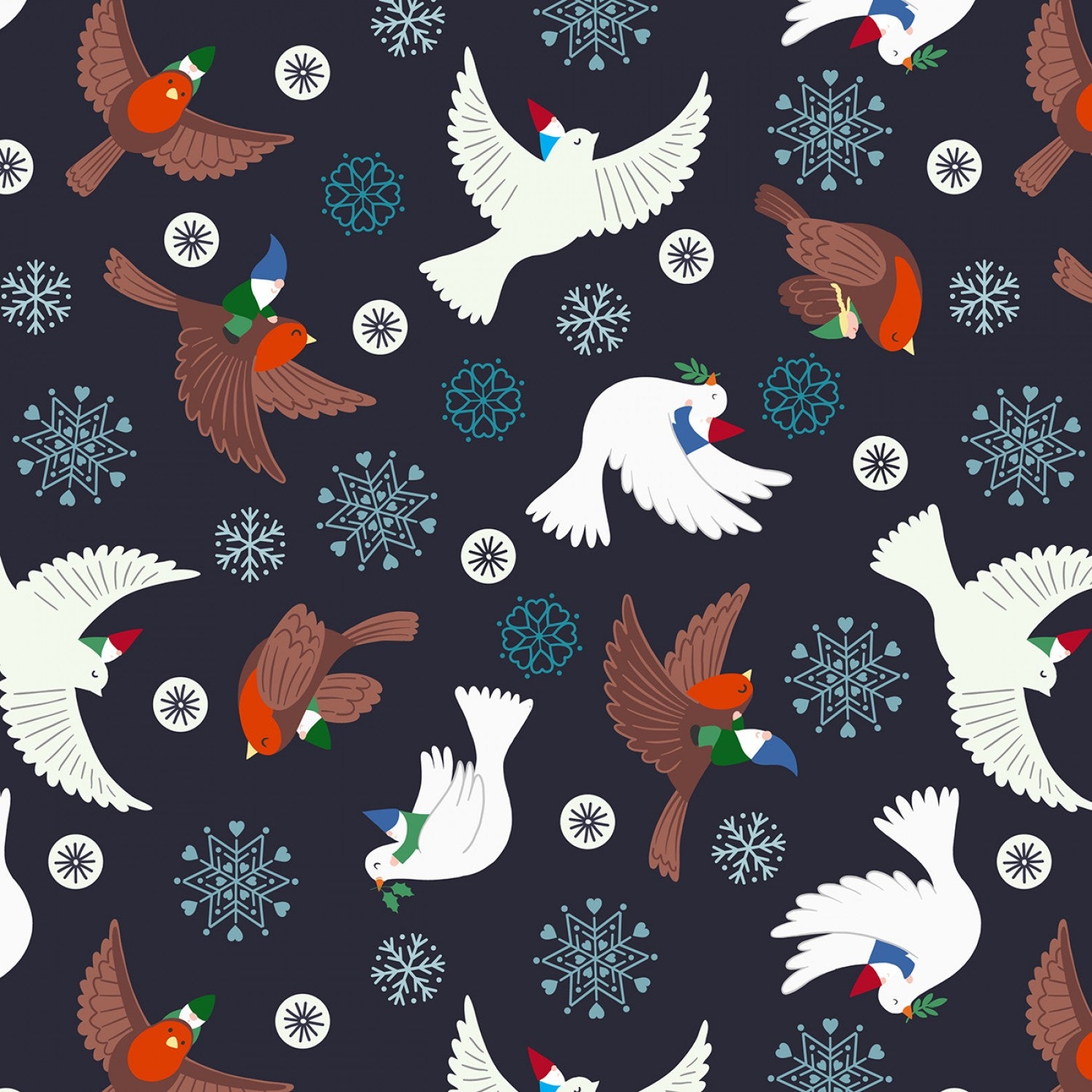 Hygee Glow by Lewis & Irene - Flying Tomte on Charcoal *Glow in the Dark* - (1 yard cotton)