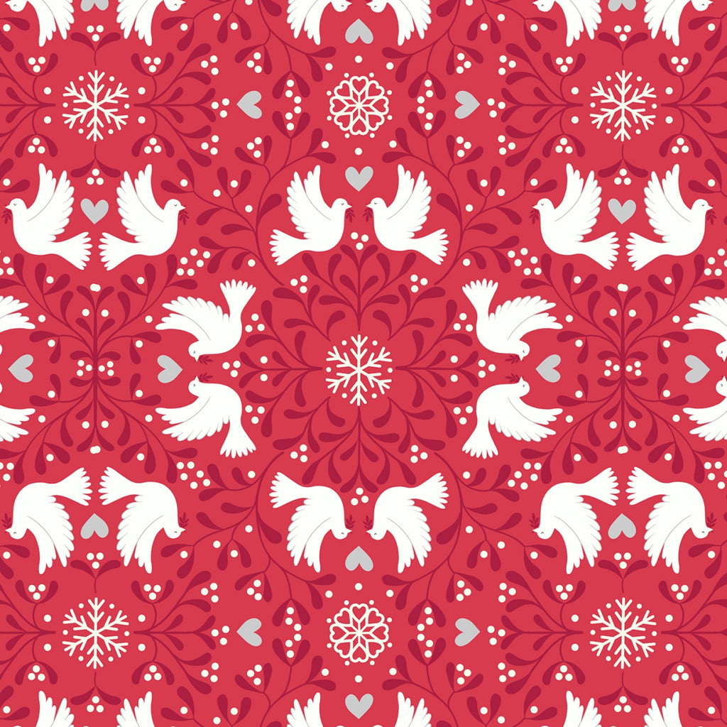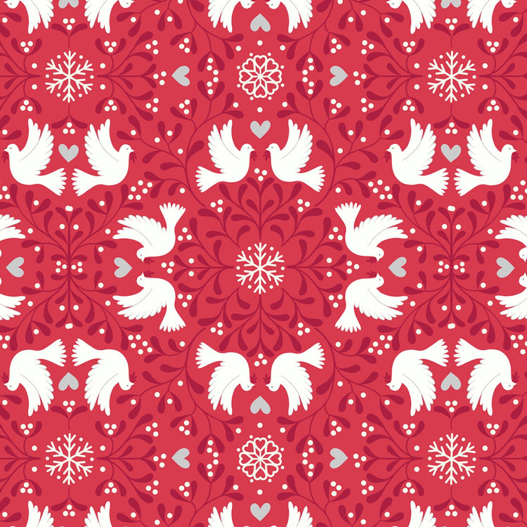 Hygee Glow by Lewis & Irene - Scandi Dove on Red *Glow in the Dark* - (1 yard cotton)